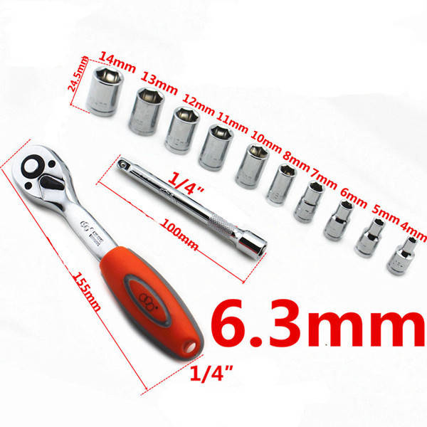 Features: Practical, Durable, ideal for various applications. With 10 pcs of 4-14mm can replace the die. Ratchet Ring spanners, Heat-treated steel design helps prevent bruised and scraped knuckles. Ideal for getting at hard to reach nuts & bolts.