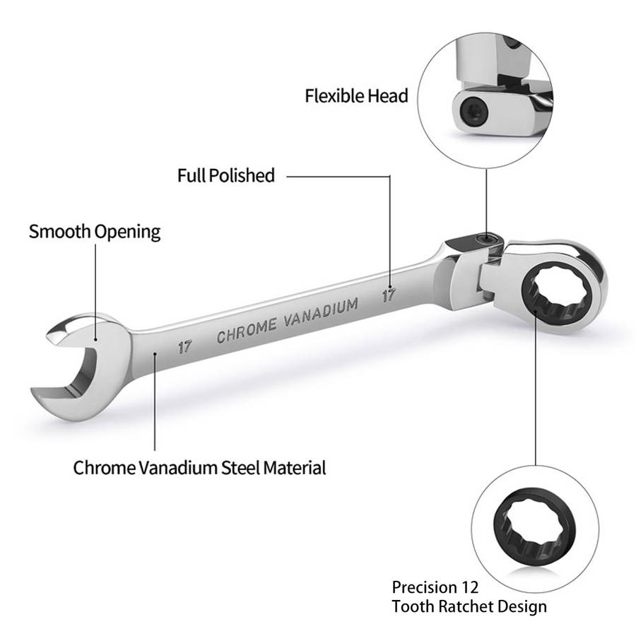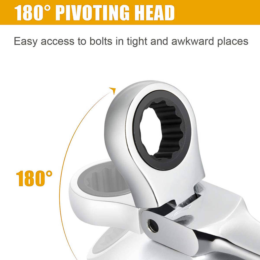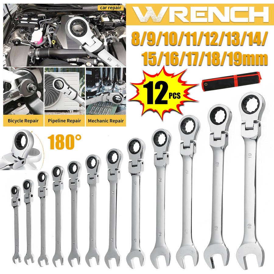 12Pcs Combination Ratchet Wrench with Flexible Head Car Repair Tools Hand Tool Set (TYPE: 12PCS)