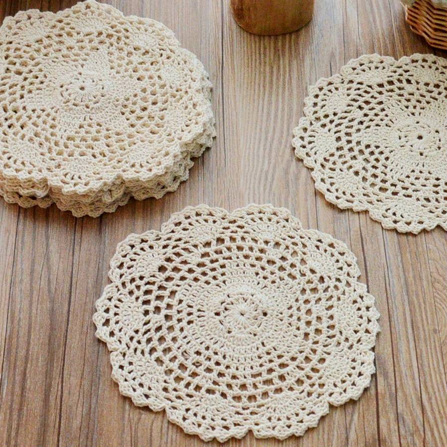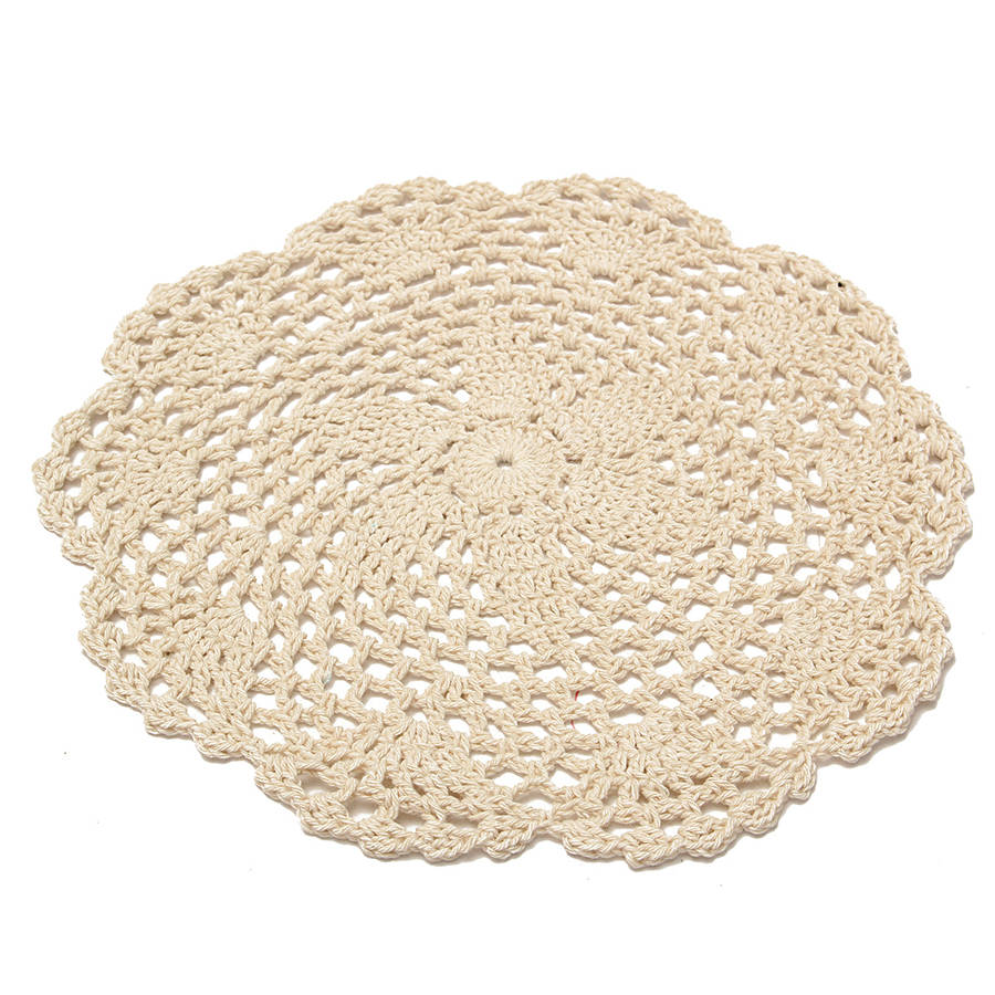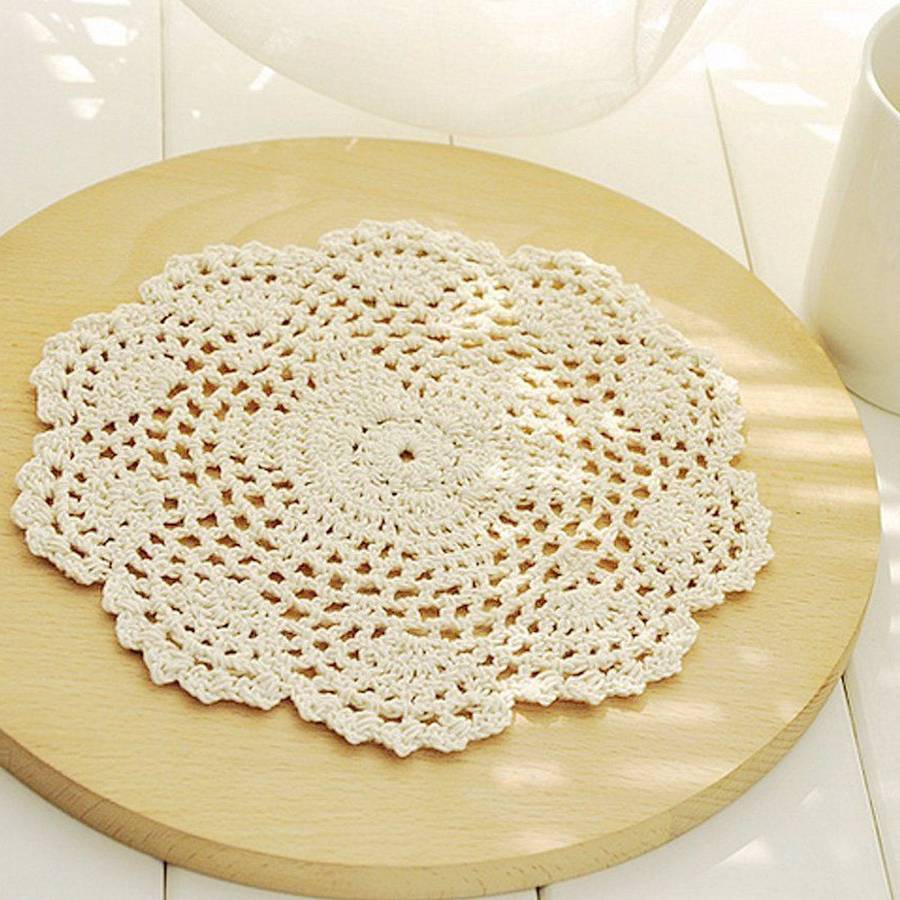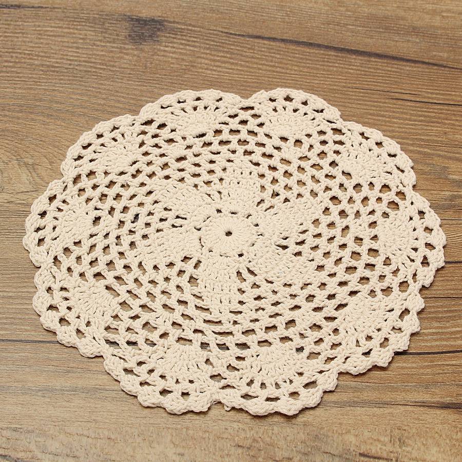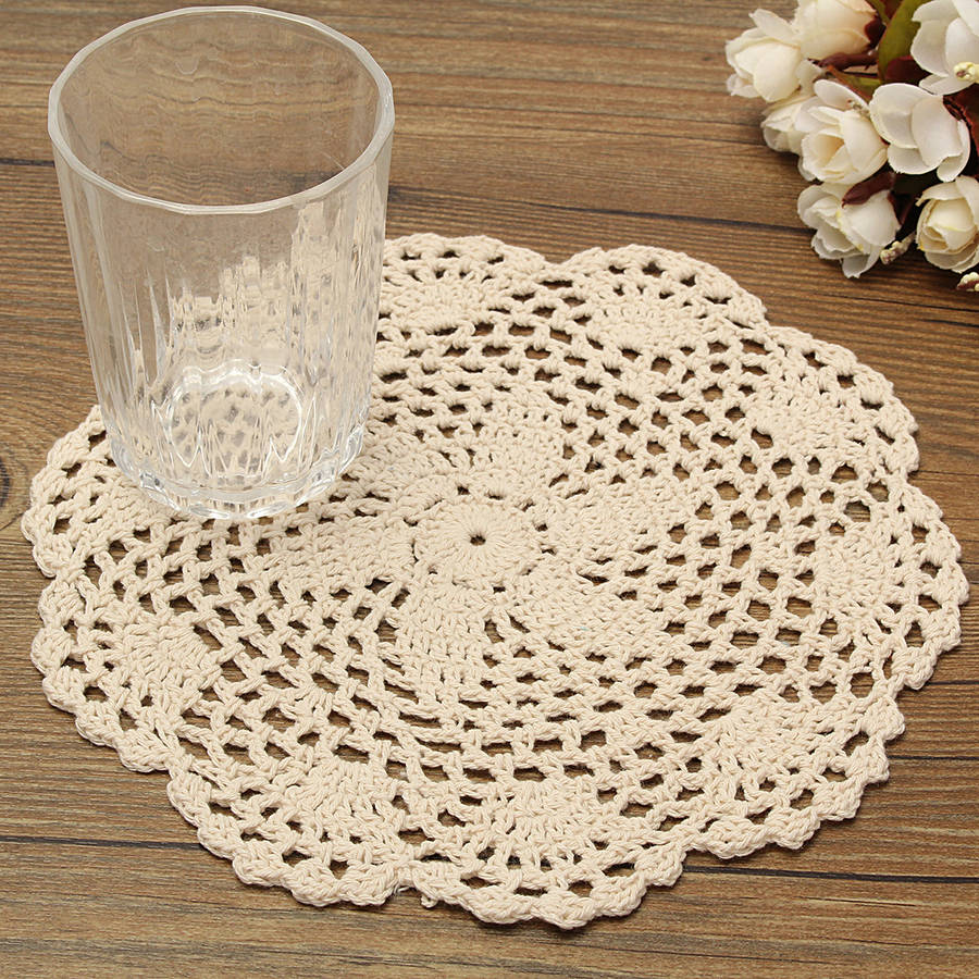 Exquisite hand-crocheted lace doily with a unique floral pattern design and delicate lace edging.