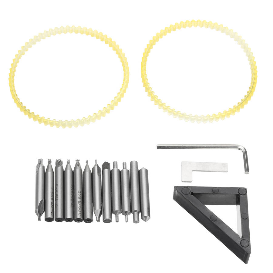 Package Included: 5* End Mill 1* Dimple cutter 4* Tracer point 2* Hollow cutter 2* Key machine belt 1* Triangle 1* L iron sheet 1* Hexagon bar wrench