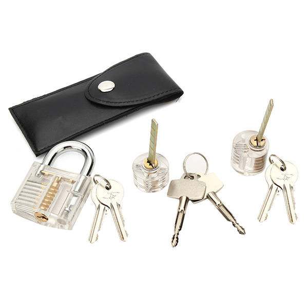 Includes 12pcs Unlocking Lock Pick Set, 1pc Cutaway T-Lock Transparent Lock and 1pc Cross-Shaped Transparent Lock