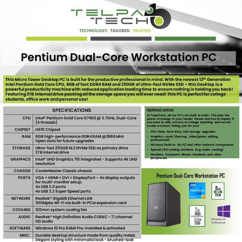 12th Generation Intel Pentium Gold Home & Office High-Performance Desktop PC 8GB DDR4 RAM, 250GB S