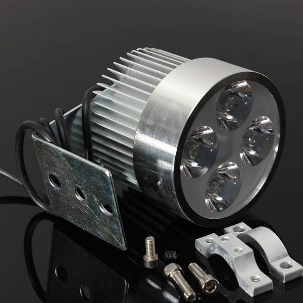 12V White Universal Motorcycle LED Front Spot Light Headlight Lamp Description: Brand new and high quality! Waterproof, anti-bump Space aluminum alloy heat sink, heat faster, Safer Super bright LED beads No maintenance, environmental protection Longer service life Note: Size may be 1-5mm inaccuracy due to hand measure. Direct plug and play. No modification required. Specifications: Color: Silver Material: Aluminum alloy Voltage: DC10-80V Size: Like the picture show Cable length: 65 cm Lamp beads: High Power 4 LED Light color: white Color temperature: 6500K Luminous flux: 1000LM Package Included: 1 x Motorcycle Spot Light 2 x bracket 4 x screw