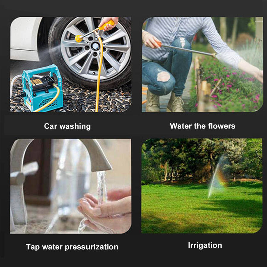 Specification: Material: Engineering plastic Usage voltage: 12V Water inlet: 10mm Outlet: 18mm Current: 4-7A Flow: 7-9L/Min Maximum shutdown pressure: 0.85Mpa Feature: - Built-in double fan for good heat dissipation. - Equipped with stainless steel screws for durability. - Made from premium materials, anti-rust and available for long lifespan. - Comes with copper motor, enjoying high power, high efficiency and low consumption. - Multi-purpose: Farmland irrigation, family car washing, garden greening, domestic drainage, etc. Package Included:? 1 x Double-Core Electric Sprayer Motor Pump More Details: