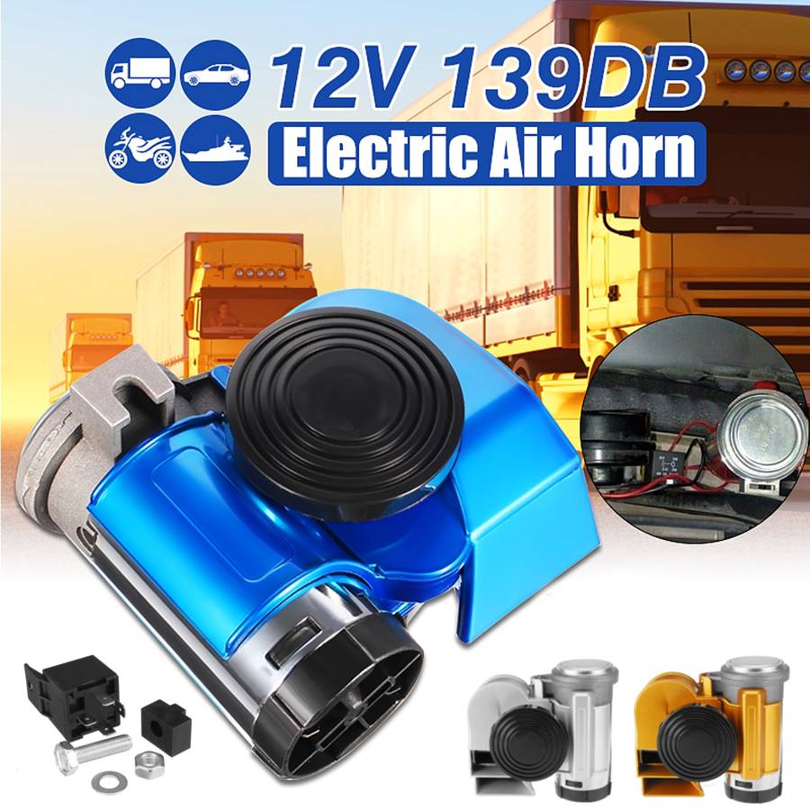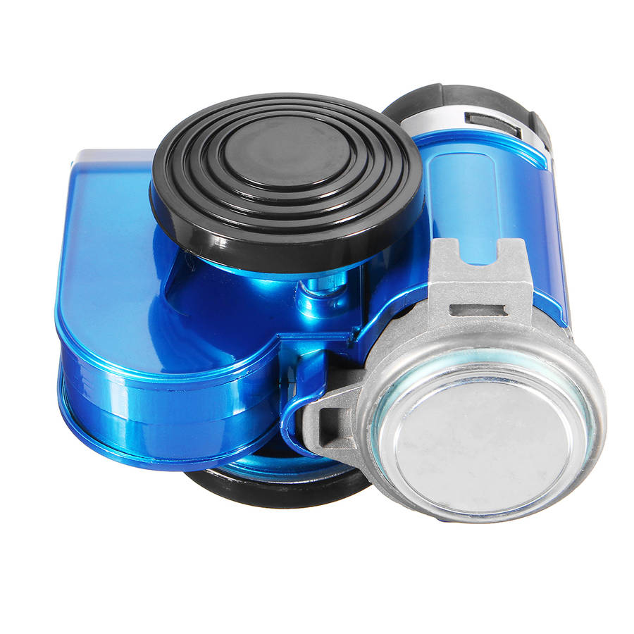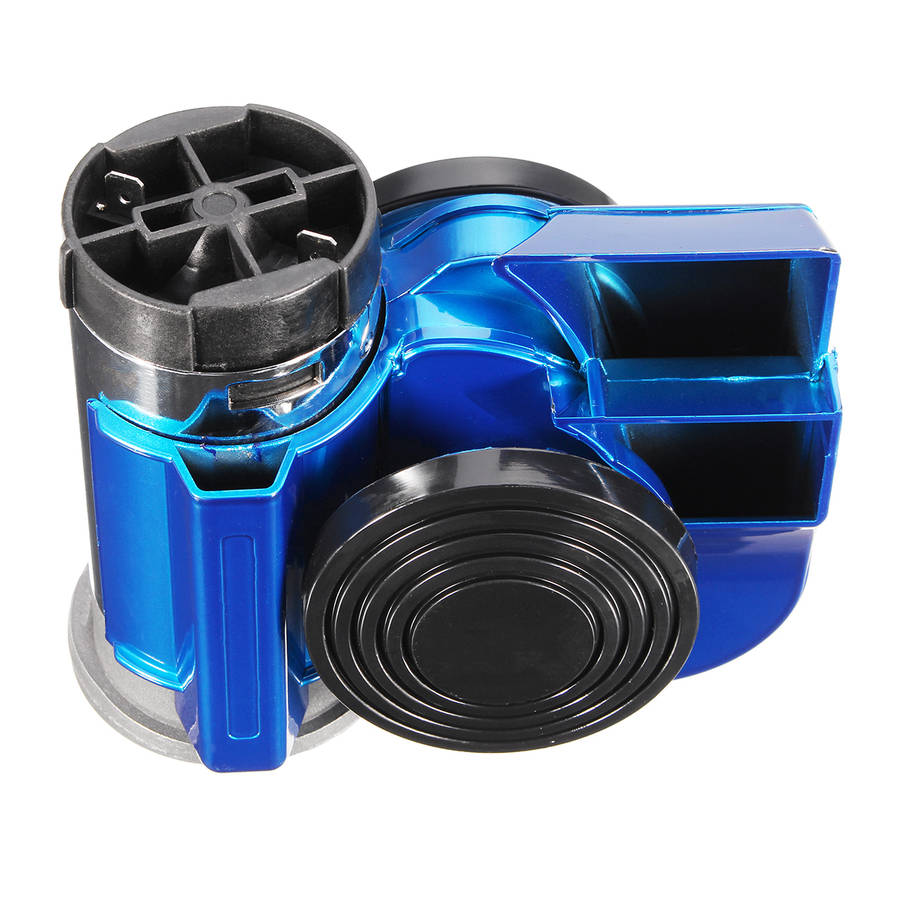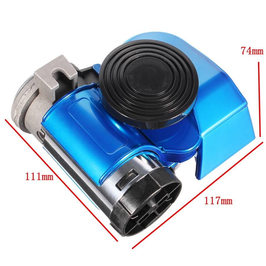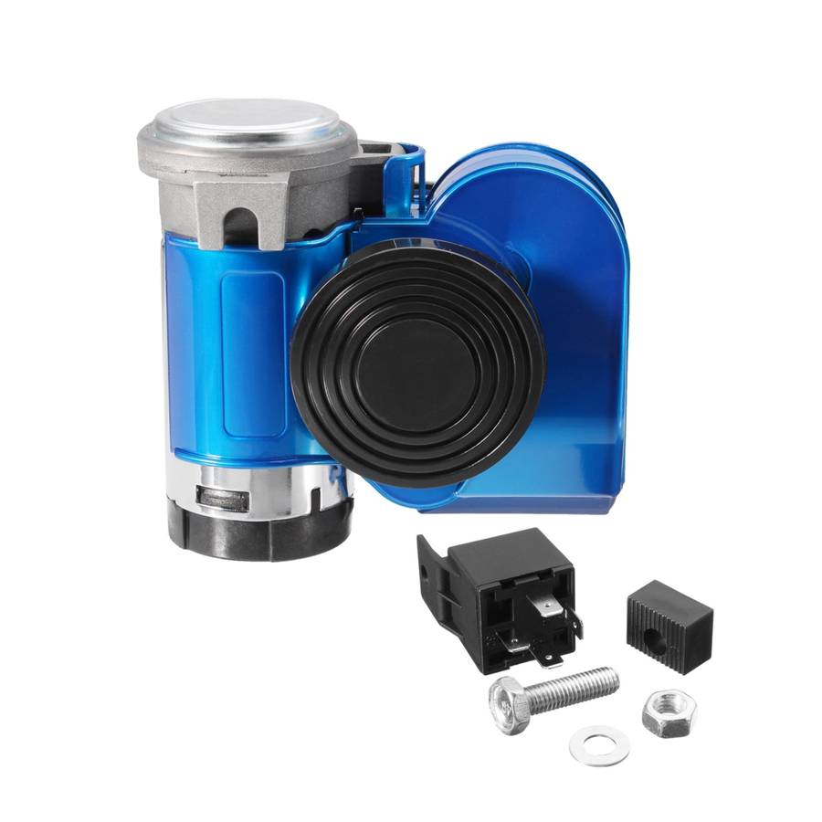 12V 139dB Dual Tone Trumpet Super Loud Electric Air Horn w/ Compressor For Car Truck Motorcycle Description: - Type:Electric Air Horn - Color:Blue/Gold/Silver - Material:Plastic and Metal - Voltage: 12 V - Sound level @ 2m: 115dB - Sound level @ 10cm: 139dB - Sound type: Dual Tone - Frequency: 530/680Hz (± 5%) - Size: 117x74x111mm (4.61x2.91x4.37) Features: 1.It is incredibly reliable motor withstands more than 50,000 continuous action cycles. 2.The air intake hole has a protection system which insures a pleasant High and Low Tone and surprising power. 3.Unique design makes it perfect for openly visible installations. 4.Durable and practical product. 5.Suitable for most of car, truck and motorcycle. Package Included: 1x Dual Tone Air Horn 1x Mounting Screw 1x Relay