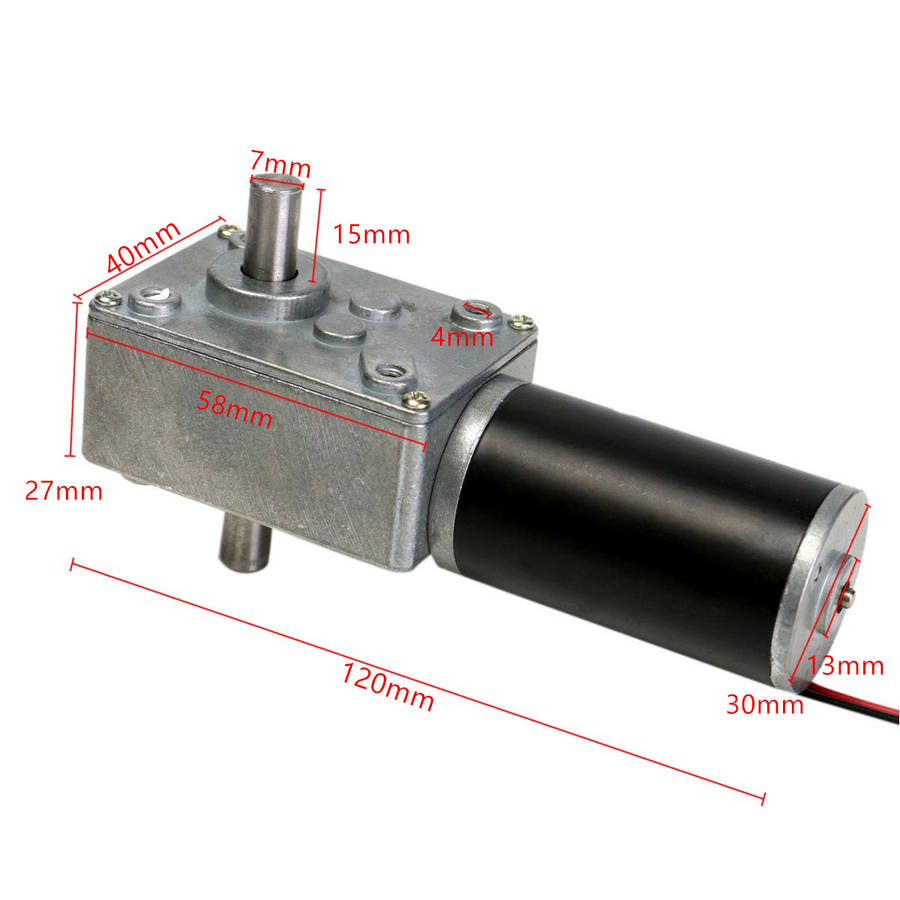 12V 160rpm DC Motor Reduction Motor Worm Gear Double Shaft Cear-box MotorFeatures : The motor is a micro turbine and worm speed reducing DC motor,which can change the direction of the motor and the rotation direction of the motor. Worm reducer motor with self lock, that is, in the absence of electric motor,the output shaft is not moving, that is, self locking, self locking forceis 1.2 times the rated torque. Gearbox output shaft and the motor shaft is vertical layout, the entire output shaftof the motor is relatively general deceleration motor ultra short, widely adapted tosome of the installation dimensions of the requirements of the occasion. Specification : Rated voltage: 12V DC No-load speed: 160rpm/min No load current: 0.22A Rated torque: 2.5kg.cm Locked rotor torque: 10.5kg.cm Size: 120mm Wire length: 170mm Package includeds :