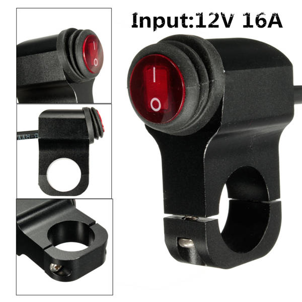 12V 16A Motorcycle Handlebar Grip Light Switch Aluminum-alloy Waterproof with IndicatorDescription:Suitable for all 12V battery installation motorcycles,motorbike,scooter.