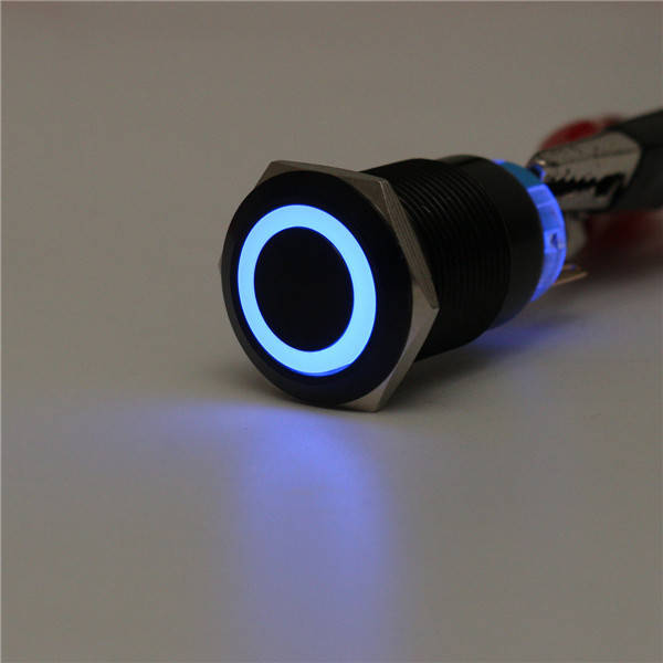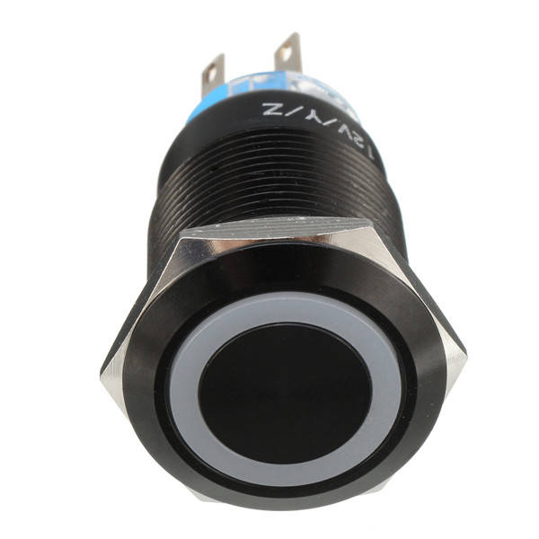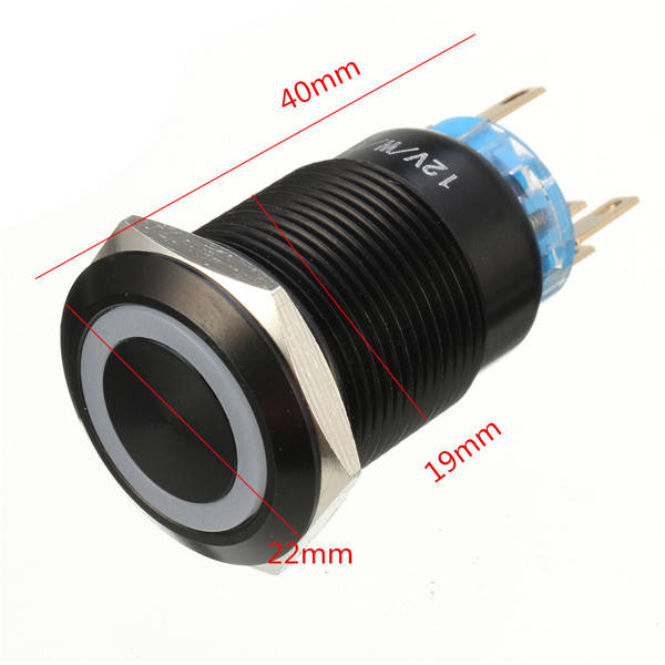 12V 19mm Self-locking Push Button Switch Ring LED Flat Head 5 Pins Waterproof Switch