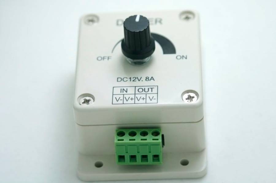 Dimmer is a controller that it can adjust brightness infinitely,its control mode is knob-operated control, you could adjust light to the appropriate lighting brightness in accordance with your actual need.