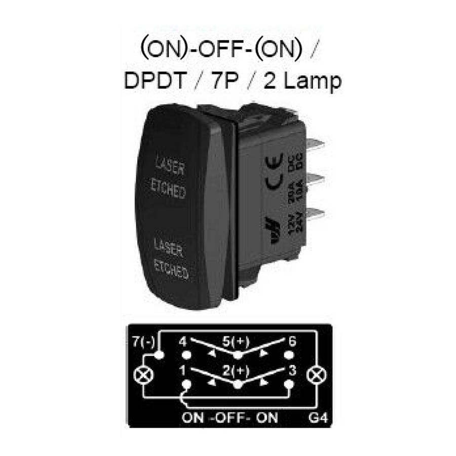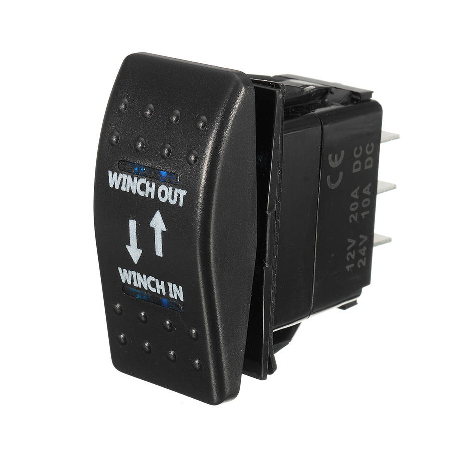 Description: Black hard surface rocker Laser etched WINCH IN WINCH OUT Legend Single upper light Single lower light Upper light is ON when the switch is pressed UP Lower light can be wired to separate dash light circuit Waterproof rating of IP66 No rear barriers between terminals Wiring diagram is not supplied Specification: Model: 569952 Product Name: Rocker Switch Color: Black Rated: 12V 20A / 24V 10A DC Pin Number: 7 Pins Light Color: Green, Yellow, Blue, Red, White (Please let us know the color youad like. You can leave the message on your Paypal note or Email to tell us. Otherwise weall send at random.) Type: (ON)-OFF-(ON) switch Switch Operate Type: Momentary Switch Cutout dimensions are 0.83 by 1.45(21mm x 36.83mm) Face surface size: 0.90'' x 1.92''(49mm x 23mm) Note: 1. No instructions included.Professional installation is highly recommended 2. Please check the size measurement chart carefully before making payment. 3. Please allow 0.5-1 inch difference due to manual measurement.(1 inch=2.54cm) 4. The color of the actual items may slightly different from the listing images due to different computer screen, thanks for your understanding. Package Included: 1 X Rocker Switch
