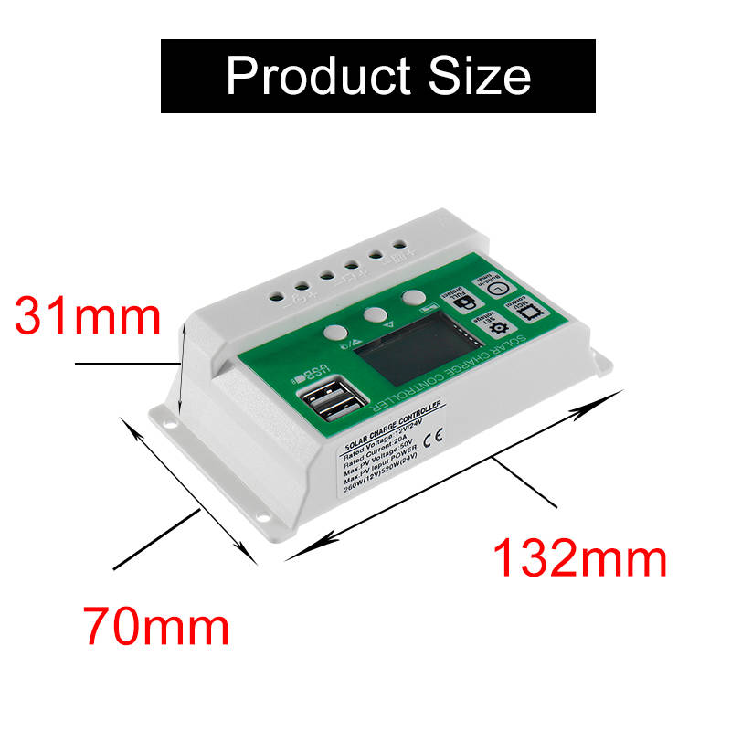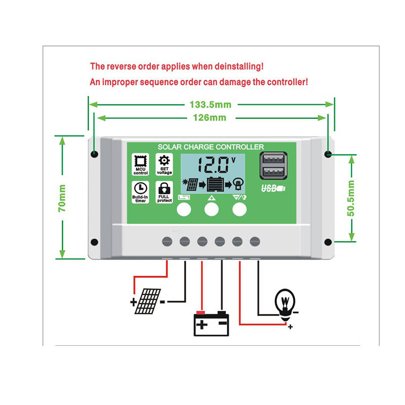 Tips: 1. This controller is suitable for 3 types of batteries, lead-acidbatteries(12V/24V auto), lithium-ion batteries(3 strings of 111V lithiumbatteries); lithium iron phosphate batteries(4 strings of 128V) Dontused in Other battery.Battery type descriptionB1 is a lead-acid battery(12V/24V auto)B2 is a lithium ion battery (3 strings of 111V lithium batteries);B3 is lithium iron phosphate battery(4 strings 128V) 2.The battery cable should be as short as possible to minimize loss.