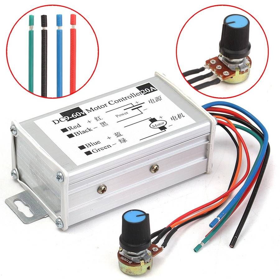 Suitable for the DC motor (or DC load) within 20A. It with metal shell and connective label, very easy to install and use. Potentiometer with adjust speed swtich function, and button swtich function.
