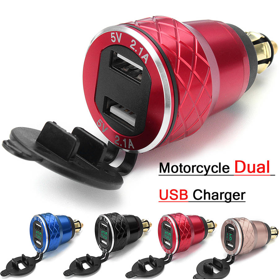 12V-24V 4.2A Voltmeter Green Motorcycle Dual USB Charger DIN Socket For BMW Mo 12V-24V 4.2A Voltmeter Green Motorcycle Dual USB Charger DIN Socket For BMW Mo