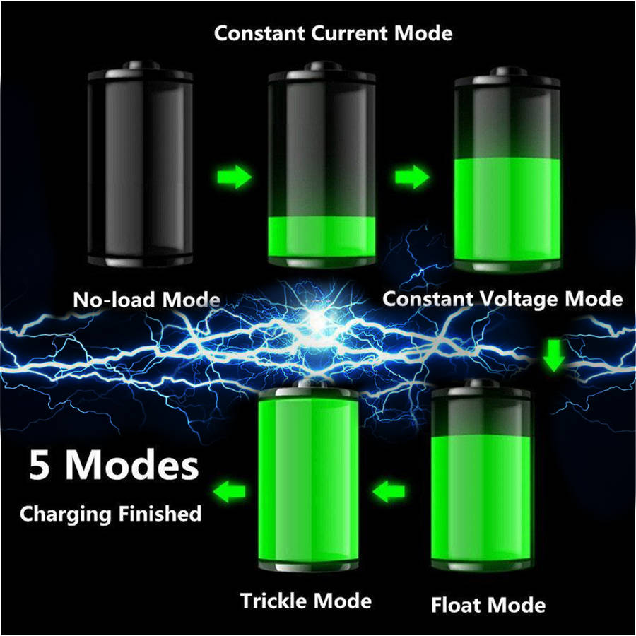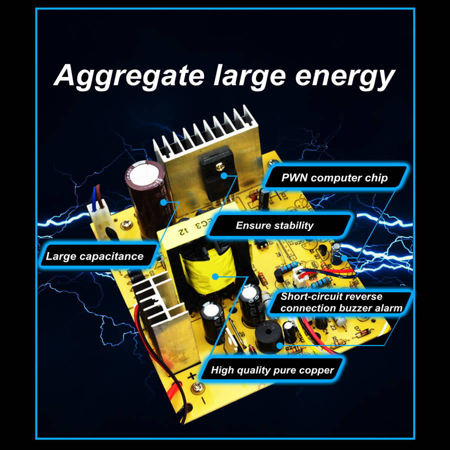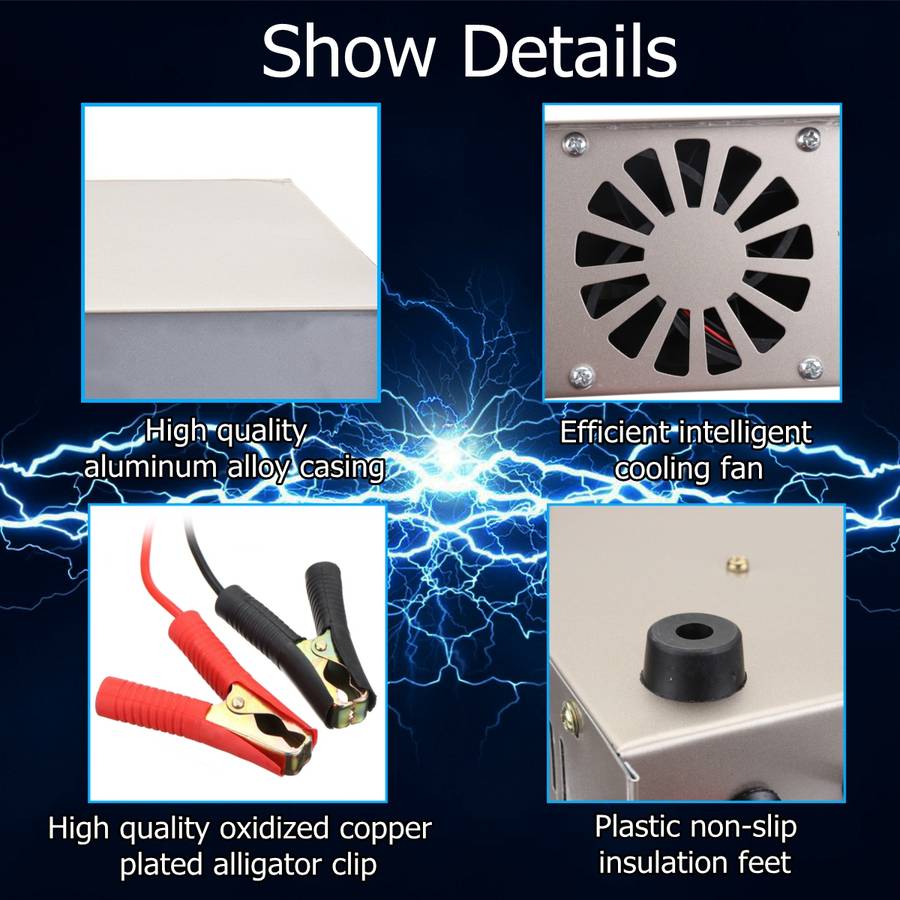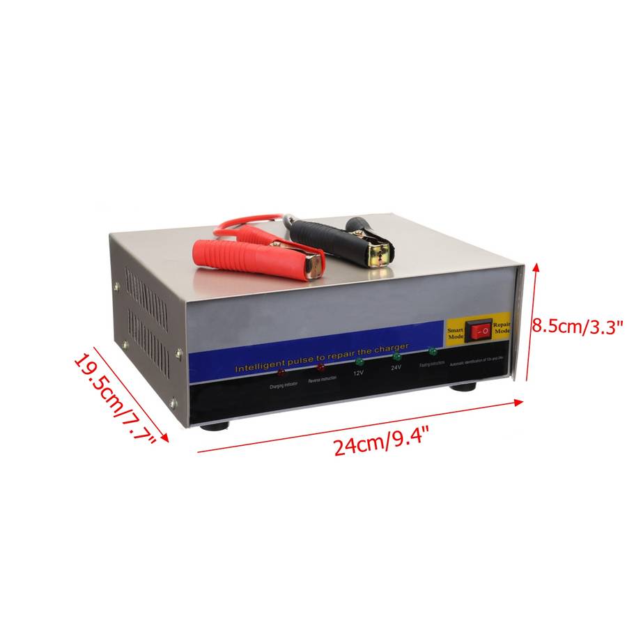 12V24V Car Battery Charger Intelligent Pulse Repair Charger Voltage Automatic Identification 6AH-200AH Features: 1. Multiple protection Short circuit protection, Reverse connection protection, Intelligent Recognition, 0 volt start, Saturation indication