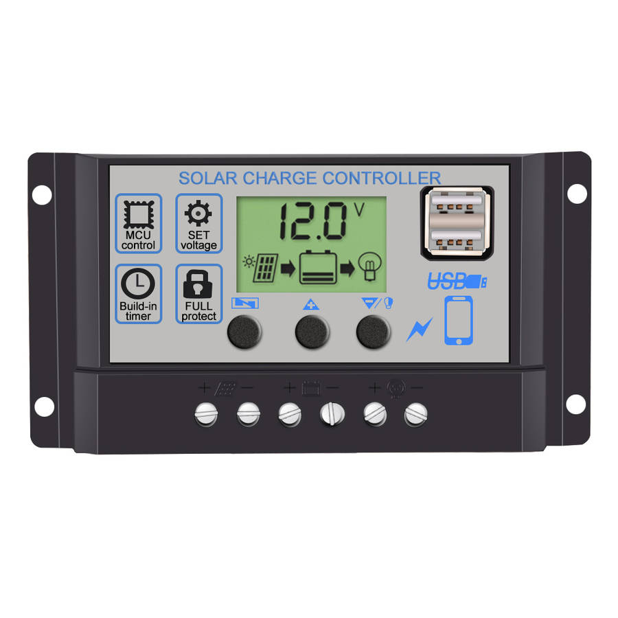 | LCD Controller | Brand: DEPENDSJXB Current: 40A-50A-60A (optional), Voltage: DC 12V / 24V? | 1. Build-in industrial micro chip. 2. Big LCD display, adjustable parameter. 3. PWM battery charging. 4.Build-in short-circuit protection, open-circuit protection, reverse protection, over-load protection 5. Dual MOS Reverse current protection, low heat production. 6. Adjustable controlling parameter of the system. |