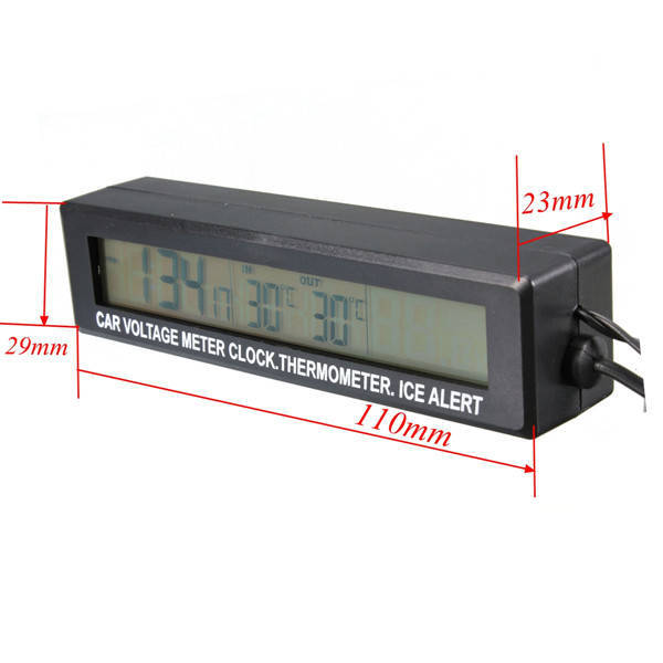 then run the car ,product will display indoor temperature (icon show IN) and car battery voltage.