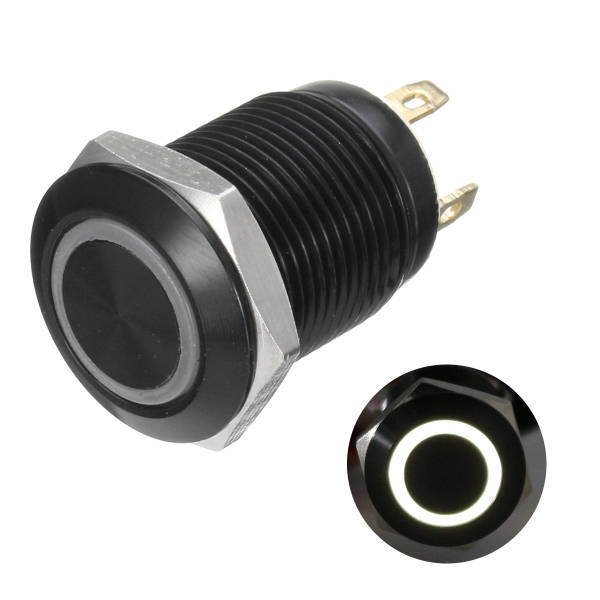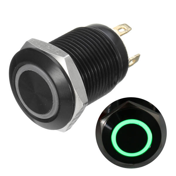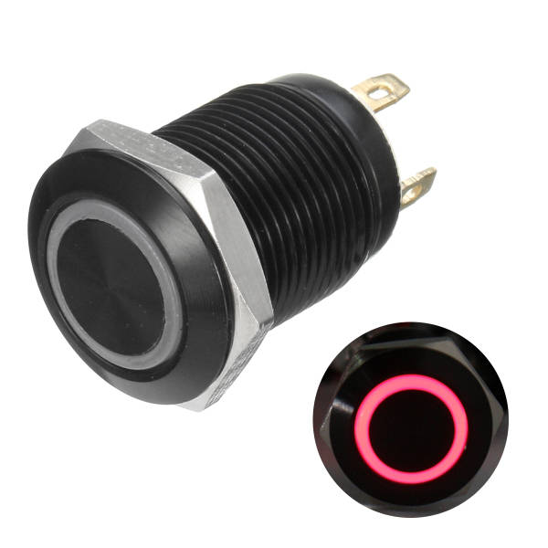 12mm Black Aluminum Momentary Push Button Switch 4Pin Ring LED Kit Multicolor