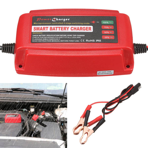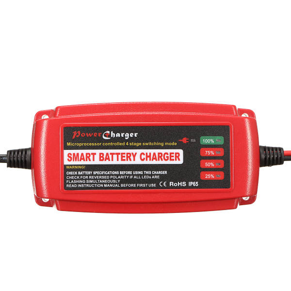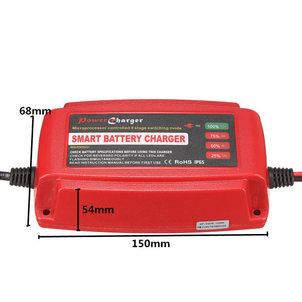 | Depend on the charged battery capacity that the "Yellow 4LEDs" light up solid,when all are ON,the battery is fully charged,you can disconnect the battery to use or keep it connected to charge in float mode.If battery stays at stage 2 after 24 hours of charging,then the battery is defective. |