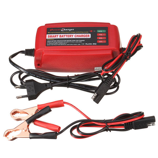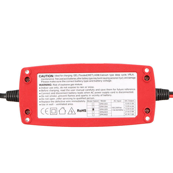 | Connect positive charger clip (red) to positive battery terminal,the black clip to negative.(You can use other dc plugs to connect battery),the "Yellow 4LEDs" lamps will light in sequence.If the battery polarity reversed or output shorted,the "Yellow 4LEDs" lamp will flashing simultaneously,please DISCONNECT&CHECK. |