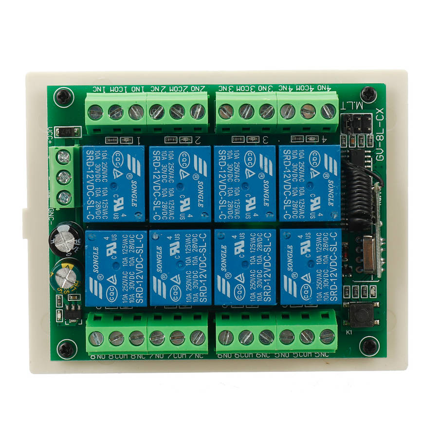 The receiver is powered by 12V or 24V, and the default is 8 independent relay signal output (that is, without voltage output), and the output terminals have normally open, normally closed, and common terminals (all without voltage). This switch can generally be applied to the following two occasions.