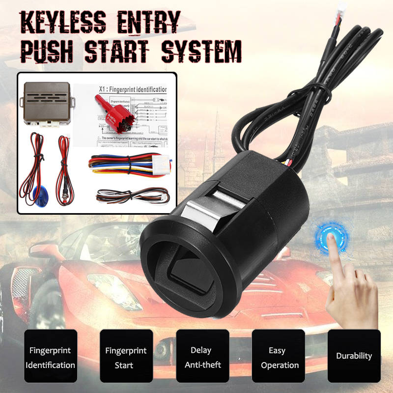 12V Car Alarm Fingerprint Start Security System Keyless Entry Push Button Kit
