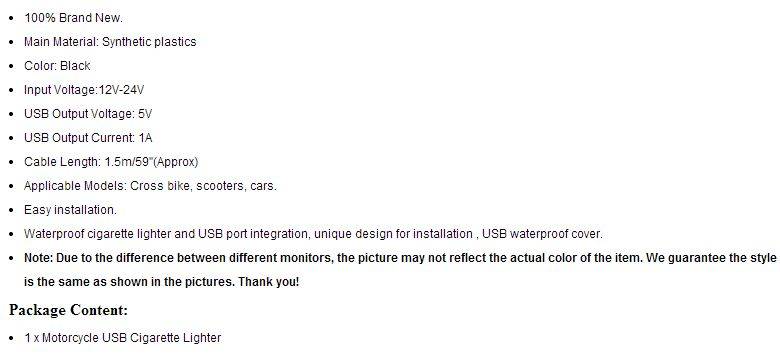 12v cigarette lighter and USB socket for motorcycle,quad,boat,jetski