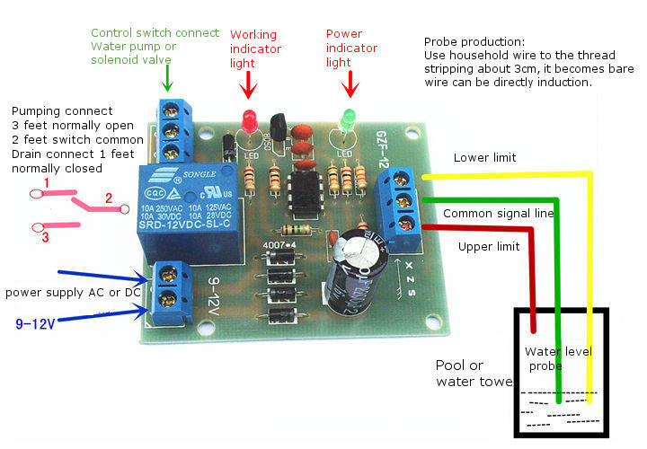| Product | 12V DC Water Level Switch Sensor Controller Water Tank Tower Automatic Drainage |