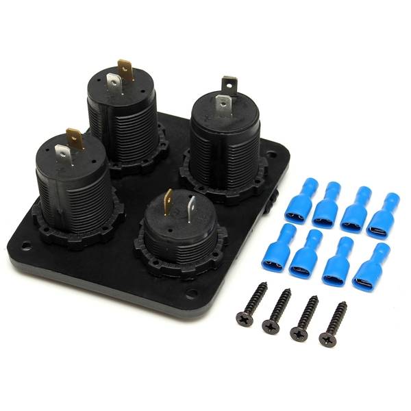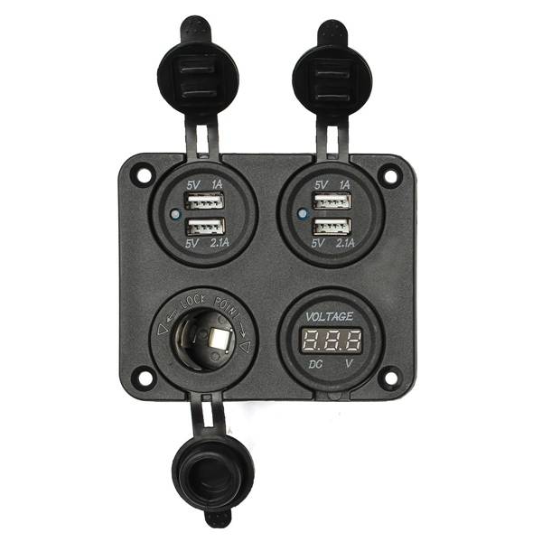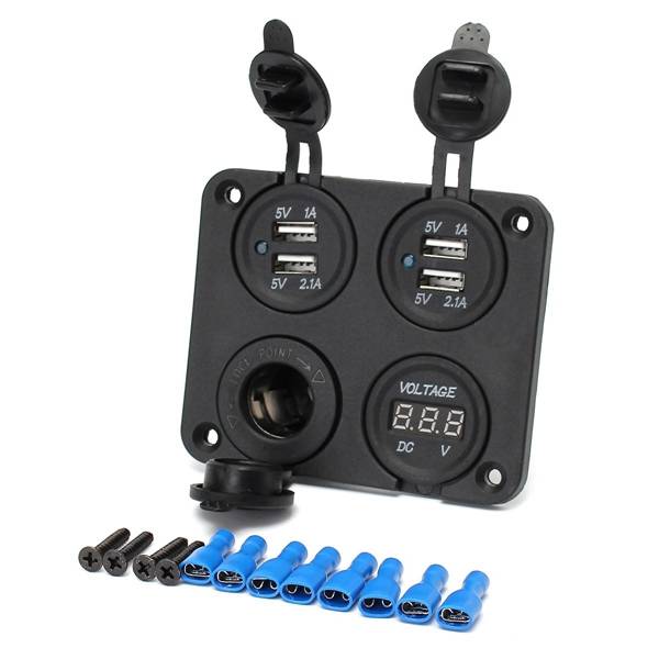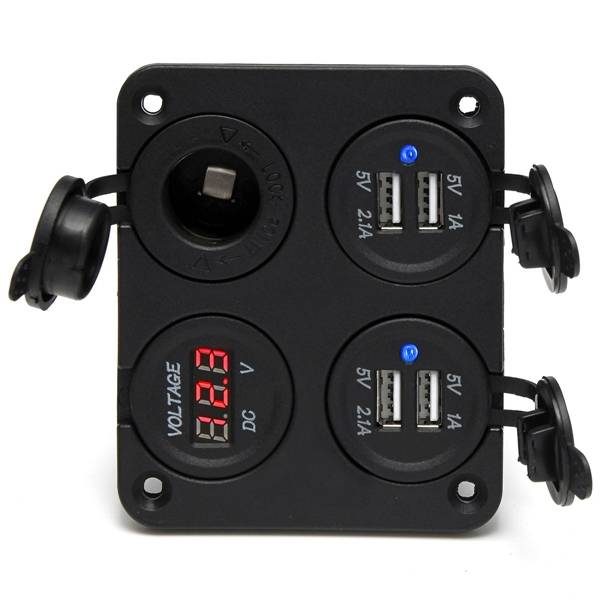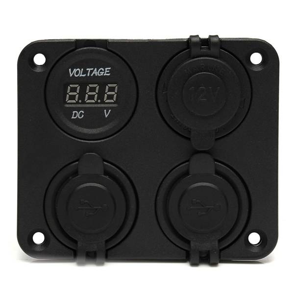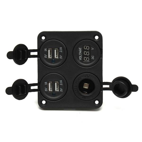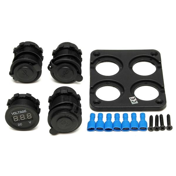 Package weight: 0.19 kg 12V Digital Voltmeter Cigarette Lighter Dual Socket USB Adapter Charger For Car Boat Description: Short circuit / overheat protection. Multifunctional product, perfect for travel use. Waterproof dustproof material can be used for the interior and exterior application. Can be installed vertically, horizontally or underneath the dash, or any flat surface. Easy to install - no need to cut out a big hole in the panel, these sit on the dash and fastened with 4 screws and 8 Insulated Terminals (supplied). Wiring kit for cigarette lighters to install in any 12-24V motorbike, Boat, Riding mower, tractor or car. Optimised for iPad, iPhone & iPod - fast charging at full speed (2.1Amps for iPad, 1Amp for iPhone/iPod). Apply to all USB charging mobile phones or other electronic products. Run multiple accessories at one time, very convenient and easy to use. Specification: Color: Black Material: ABS + metal Panel Size: about 102x85x5mm USB Charger: Operating voltage: 12V Interface: 4 USB Output: DC 5V 1A/2.1A Indicator: Blue LED Widely used with electric equipment for power supply: Vehicle,GPS, mobile phone, camera, mp3 (can smoke) Allow any automotive with a cigarette plug attachment to be used with these surface mount cigarette sockets. Voltage Meter: Operating Range: DC 6-30V Display: Digital display The meter has easy to read red LED segments and connect to your 12 volt system. Cigarette Lighter: Operating Voltage: DC 12V Barrel inner diameter:2.1cm/0.83" Barrel inner length:3.6cm/1.42" Can be used to light cigarettes: No Package Included: 1 X 12-24V Car Cigarette Lighter+Dual Socket USB Adapter Charger+Digital Voltmeter 4 X Screws 8 X Insulated Terminals