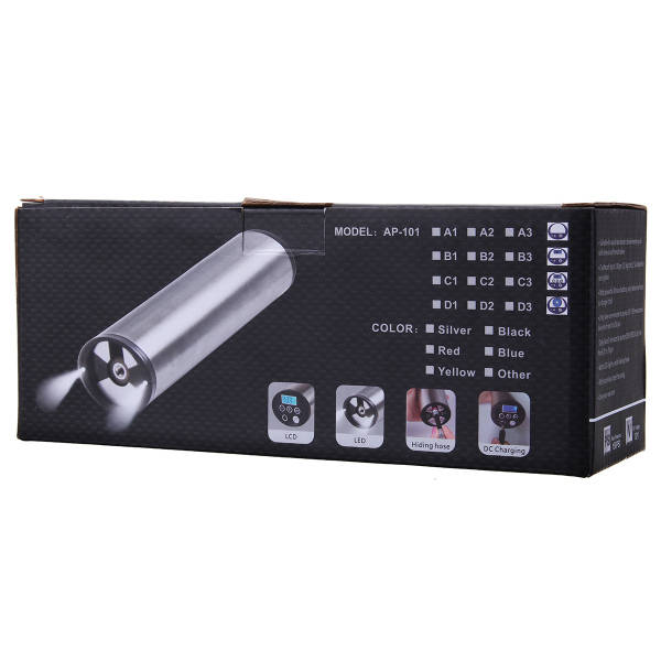 | 7. The intelligent type air pump will automatically stop to inflate the Tyre when air pressure reaches the setting pressure value, you need to press the Power Switch to turn off the LED lamp |