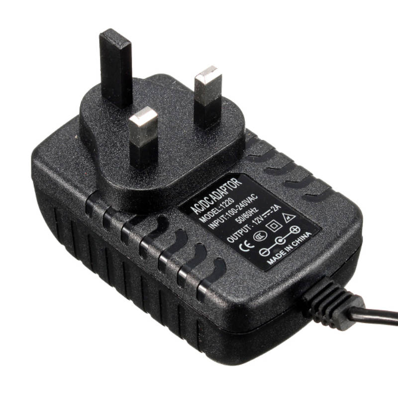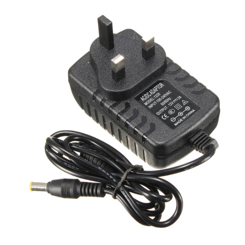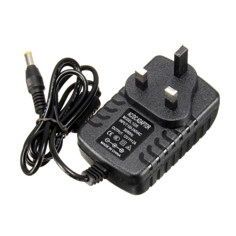 Specifications: Input : 100-240V AC 50/60Hz Output: Regulated DC 12V - 2.0A Color:Black Length:8cm Width:5cm Height:6.5cm Length of cable:100cm (Approx)