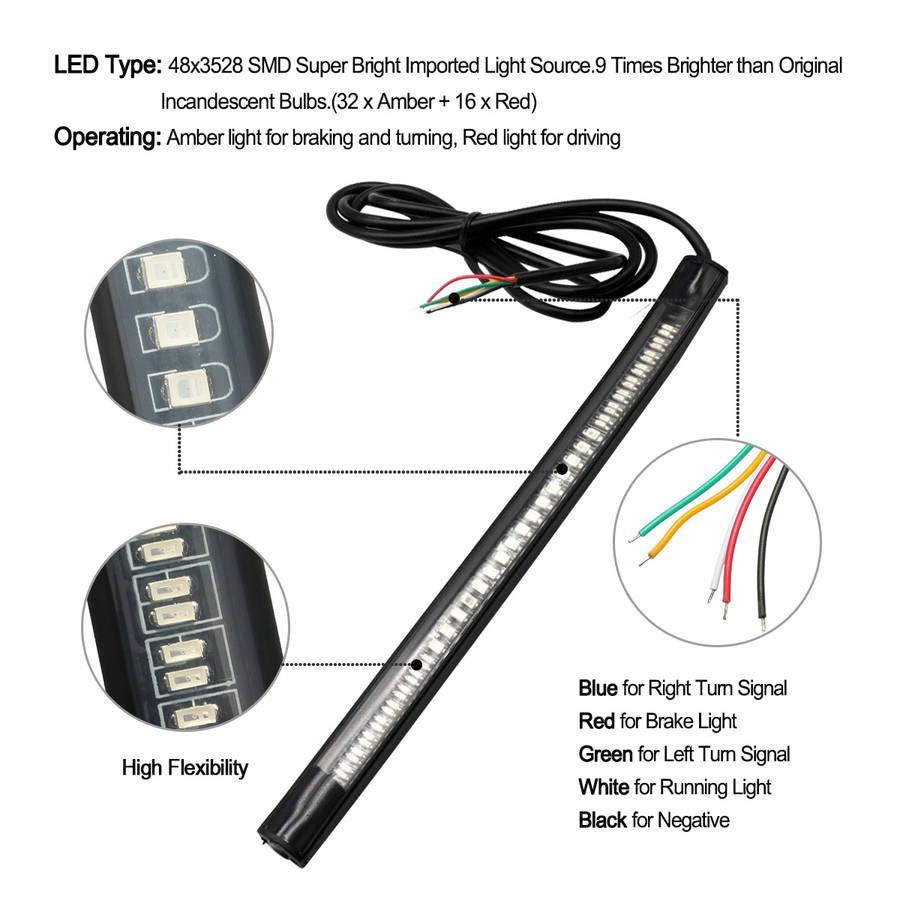 Product | 12V Motorcycle Safety 48LED/36LED Strip Light Running Rear Brake Turn Signal Flexible |