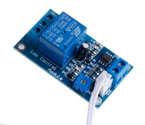 The module when the ambient light is darker than the threshold value is set, the relay is energized, the common terminal and the normally start is turned on, when external ambient light is brighter than the set threshold value, the relay is switched off, the common terminal and the normally closed end connected
