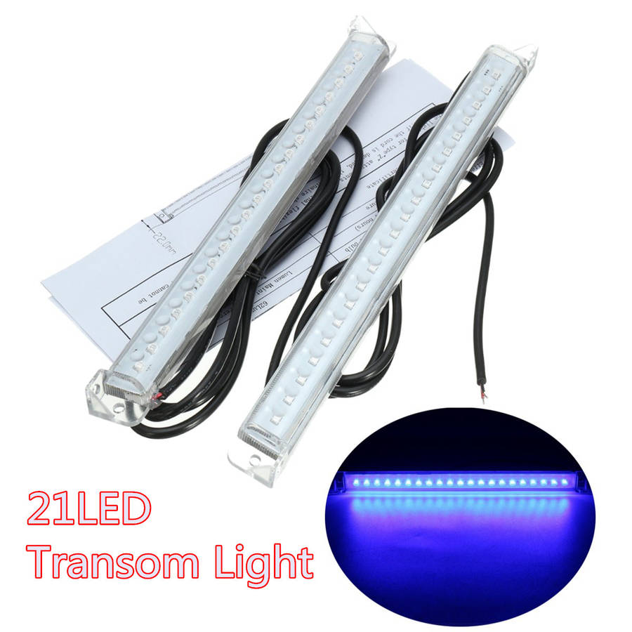 Description: Night activities Safety for loading and unloading at night Great for attracting fish on your evening trips Easily be seen out on the water Simple accent lighting Specification: Model: 543710 Product Name: Boat Transom Light Material: Housing Made of PC Housing Color: Clear Led Color: Blue Led: 21PCS LED Beam Angle: 120 Degree Feature: Surface mount Working Voltage: DC 12V Wattage: 2.4W Effective Lumen/ Power compared to standard bulb: 62 Lumen / 50 W Life TEST FOR LED LAMP(1000 hours):Lumen Matintenance percentage more than 95% Operation Temperature: -20~ +45a Testing Module: Lasting 1000 hrs Temperature Range 36-40a Humidity: 60%RH instruction: Included Black Wire: Negative Red Wire: Positive Weight: 195g These light have the UL,CE,RoHS,TUV Certifications. Package Included: 2 X Boat Transom Light With Accessories