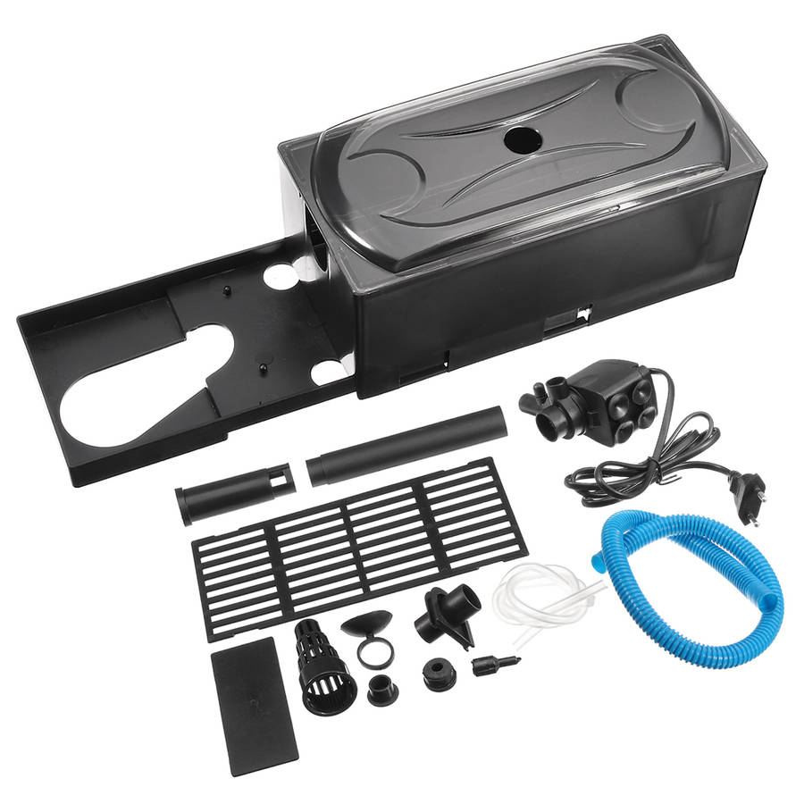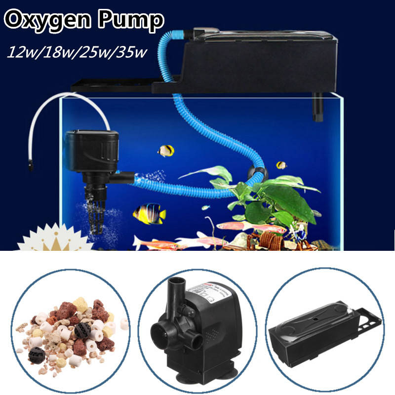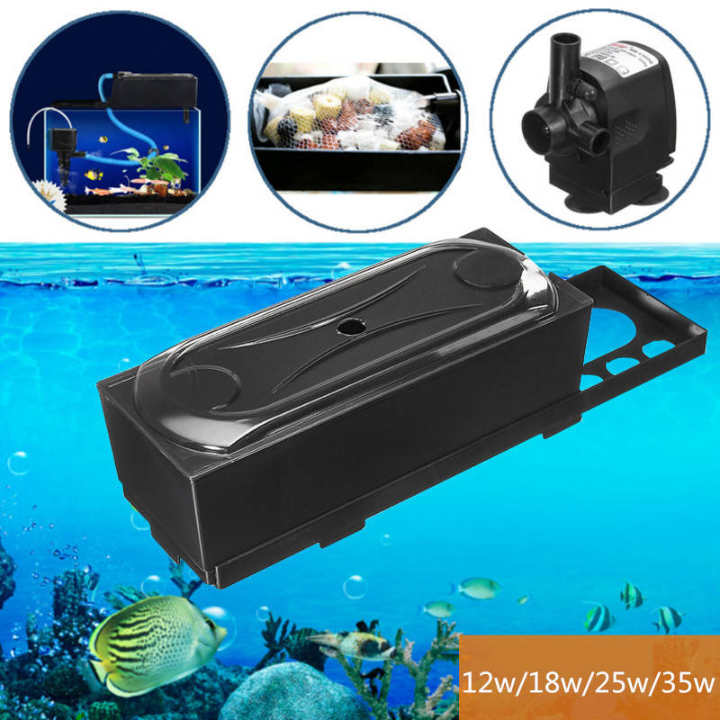 Specifications: - Style: #1: Filtering materials + mesh bag, #2: 12WPump, #3: 18WPump, #4: 25WPump, #5: 35WPump -Material: Plastic -Power: 12W/18W/25W/35W -Flow Rate: 1000L/H,1300L/H,1800L/M,2800L/H -Lift:0.8M/1.2M/1.8M/2.2M Features: -Semi-enclosed design by hanging on the outside of aquariums. -Set different spaces for putting different filtering materials. -Mini design and hanging style, can save space greatly. -Low noise, fishes or turtles can play in the tank comfortably. -A good supply for people who like feeding aquatic pets. Note: - At the first time, please ensure that filter box is full of water. - The deeper suction pipe is submerged in water, the better ! - Then you can plug in the power. Package Included: 1 x External Oxygen Pump
