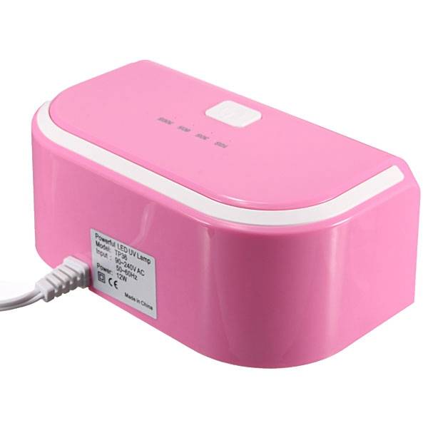 Description: Item Type: LED Nail Lamp Color: Pink Power: 12W Input: 90-240V AC 50-60Hz Size: About 16*9*6.5cm Weight: About 313g