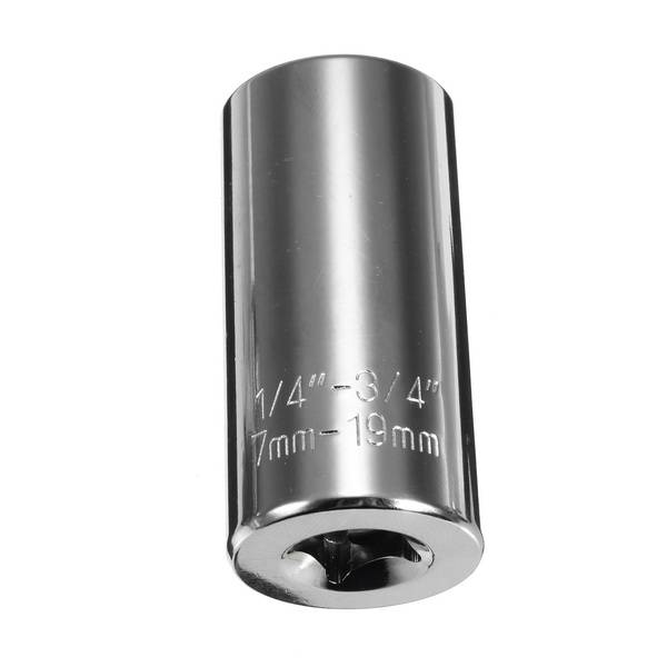The revolutionary socket design automatically adjusts to fit any nut or bolt from 1/4" to 3/4" , 7-19 mm! Works great on metric, standard, wing nuts, broken nuts, stripped nuts, eye bolts, square nuts, hexes and more! Save Time! Save Work!