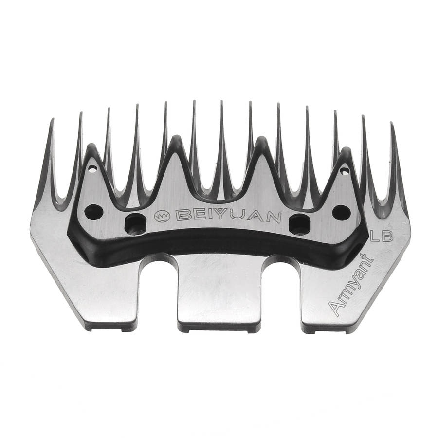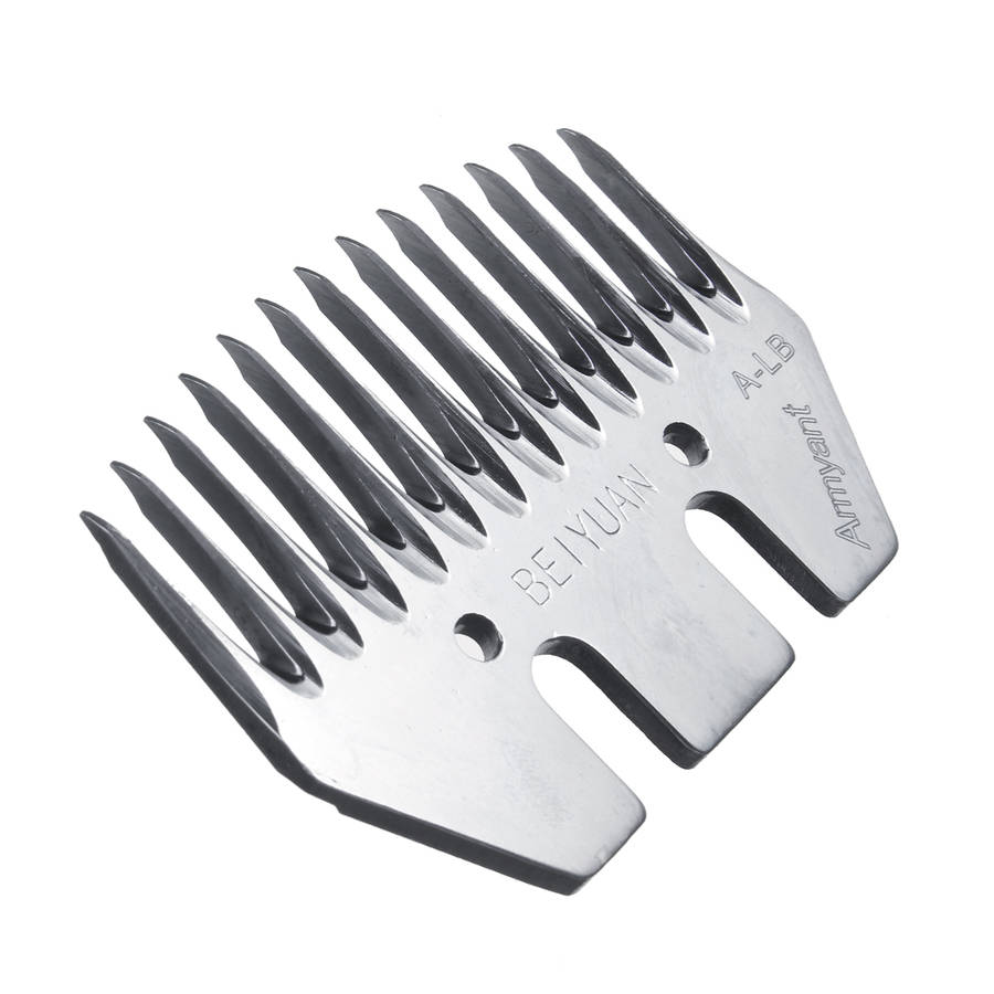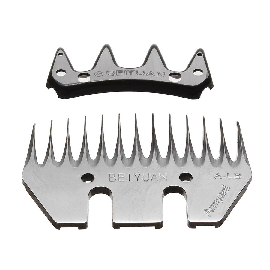 Description: The blades is for electric sheep shearing machines, you can compare it with your sheep shearing machine, if the parameter is similar with your blades, then it can be okay for your machine. of course,every machines have its tolerance for its blades' size. Specification: Material: Stainless Steel Type : Straight 13 Tooth Application : Sheep Goat, etc farm animals Festures: - This sheep shearing blades made of high quality materials, advanced heat treatment technology system, high hardness, toughness, wear resistance, sharp. - 9 teeth and 13 teeth sheep shearing blades for option: 13 teeth is suitable for clean wool, 9 teeth is suitable for dirty wool. - Each piece of the blade can clip about 200 sheep. Using grindstone or gauze for grinding if the blade is blunt. The blade must be close to the grindstone when grinding, no gaps! - Straight blade is used for inexperienced. Curved blade is used for professional farmer. - One set blades includes one moving blade and one fix blade. Package Included: 1 x Set of Sheep Shears Blades More Details: