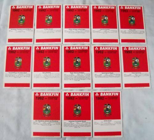 13 x SPORTS DECK CARDS-1992-TRANSVAAL-RUGBY-BANKFIN CURRIE CUP SERIES-EXCELLENT CONDITION-LIONS