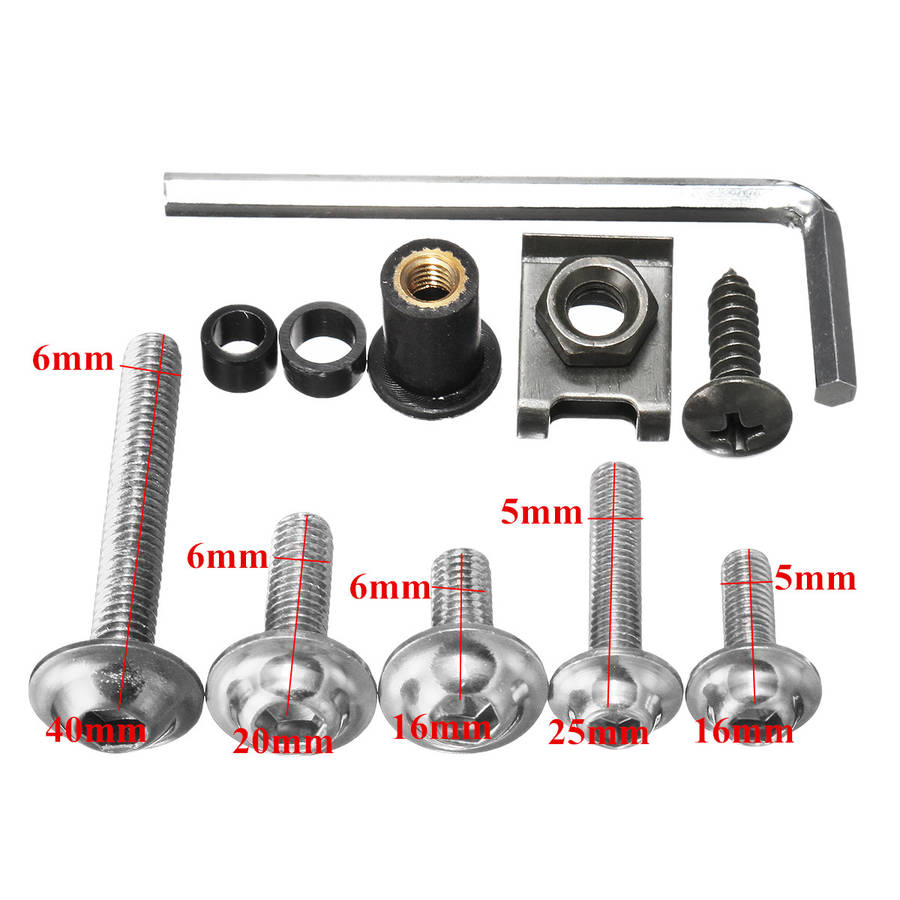 Specification: Product name: Motorcycle Fairing Bolts Kit Material: Aluminium Color: Black,Blue,Yellow,Green,Red,Silver Fitment: Fits most of sportbikes including for Honda/Yamaha/Kawasaki/Suzuki/Aprilia/Ducati/Triumph/MV Agusta...