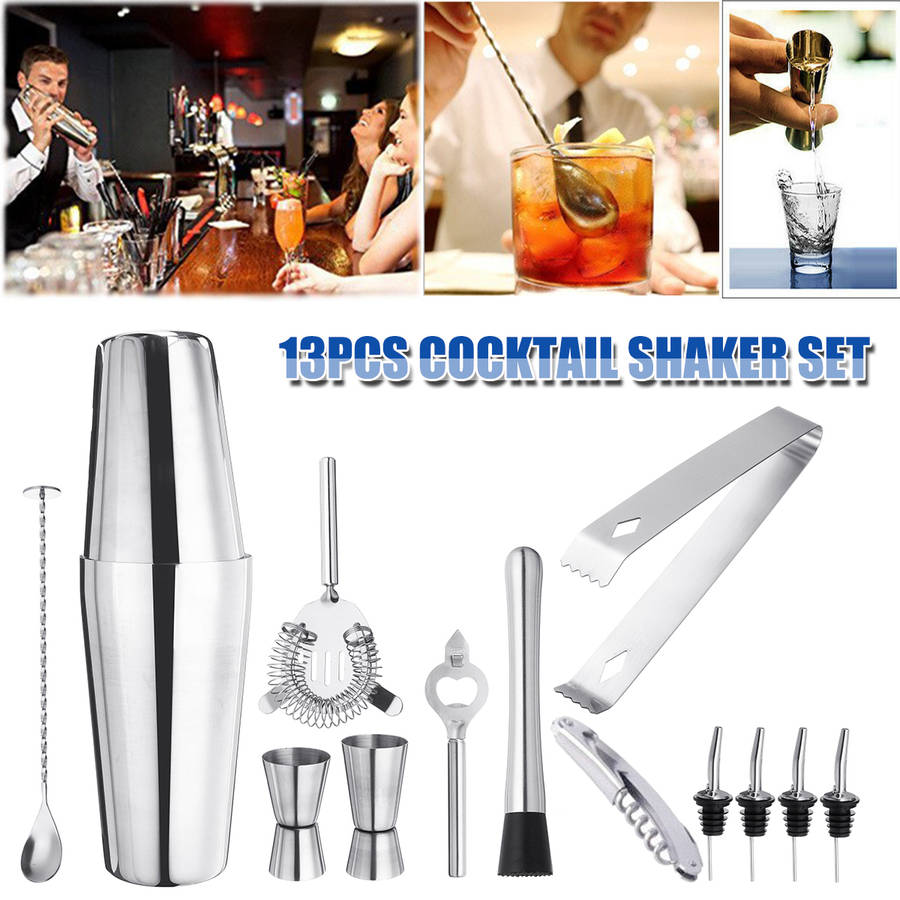 13PCS Bar Bartender Stainless Steel Cocktail Shaker Drink Mixer Set