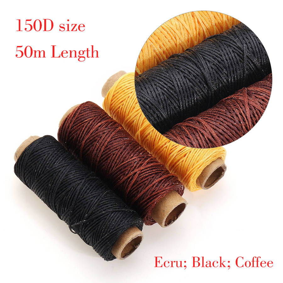 3x Flat Wax Ropes: 150D size, 50 m length, Including ecru, black and coffee