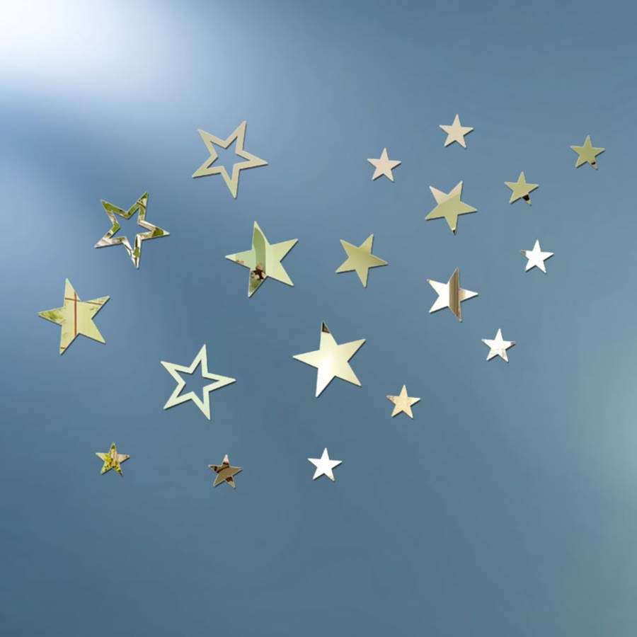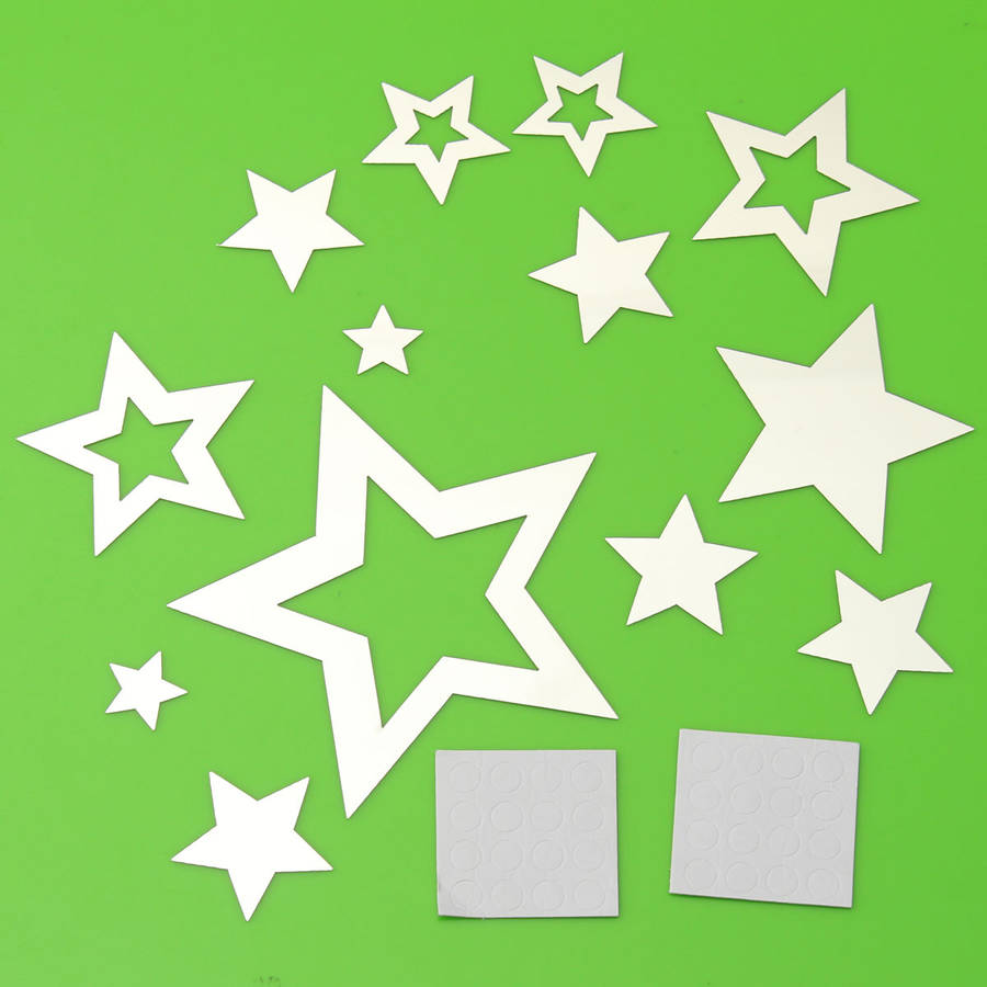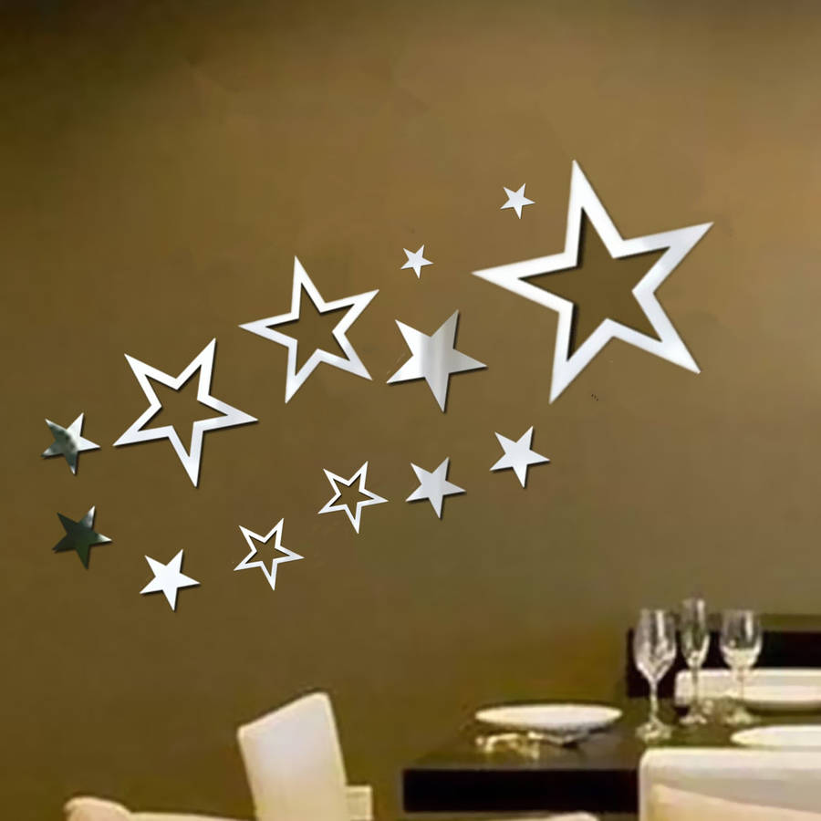 Features: a Fashion Star Designs, Give Your Home Filled Full With Art Feeling. a Comes With High Viscosity Adhesive On The Back,Light, Easy And Convenient To Used. a 13pcs A Set,Can DIY, Design All The Shape You Like. a Use This At Home, Office, And Anywhere Else,Environmental Protection, Can Instantly Live In. a Acrylic MaterialLong Period, No Fade, No Causticity, Can Be A Mirror. Specifications: Color:Silver Material: PS(Polystyrene) Number: 13pcs Package Includes: 13 x Star Mirror Stickers 2 x Double Side Tape