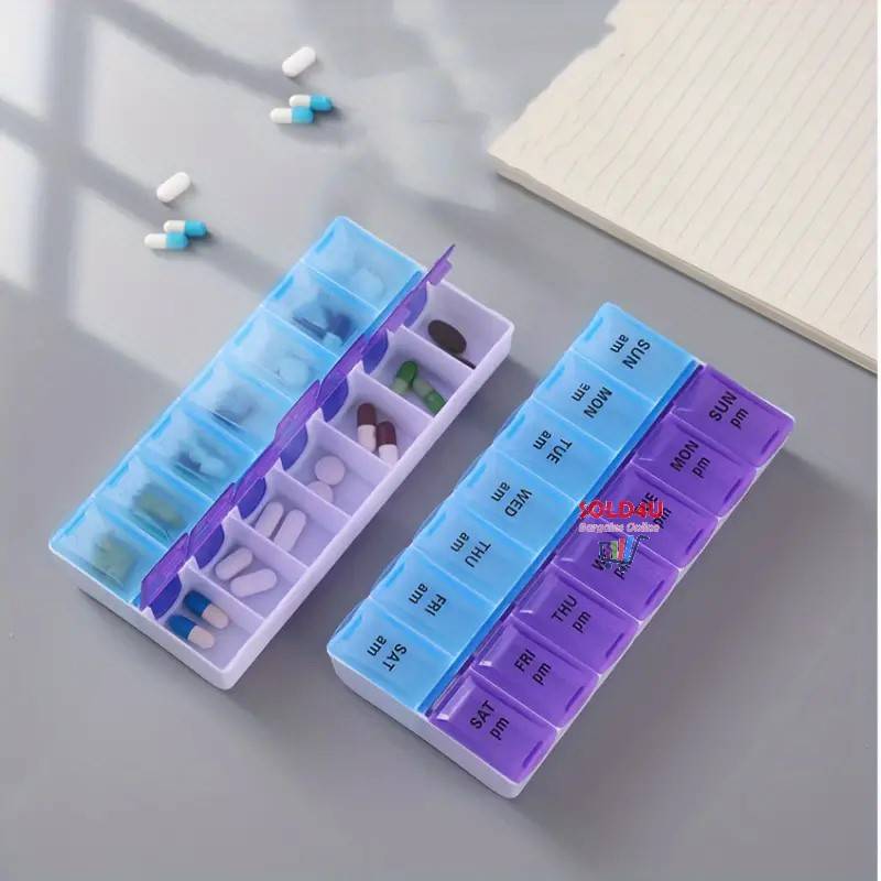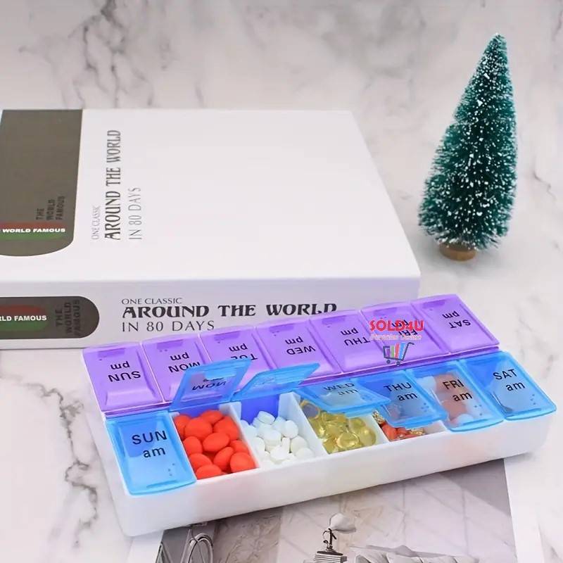 -14 compartment sill storage box is printed with dates,easy to remind users the time for pills.