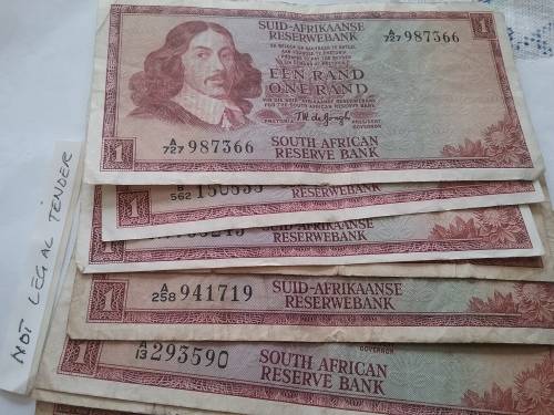 14 x CIRCULATED R1 NOTES - 13 X TW DE JONGH + 1 X RISSIK. BID PER ITEM TO TAKE THE LOT. GOOD.