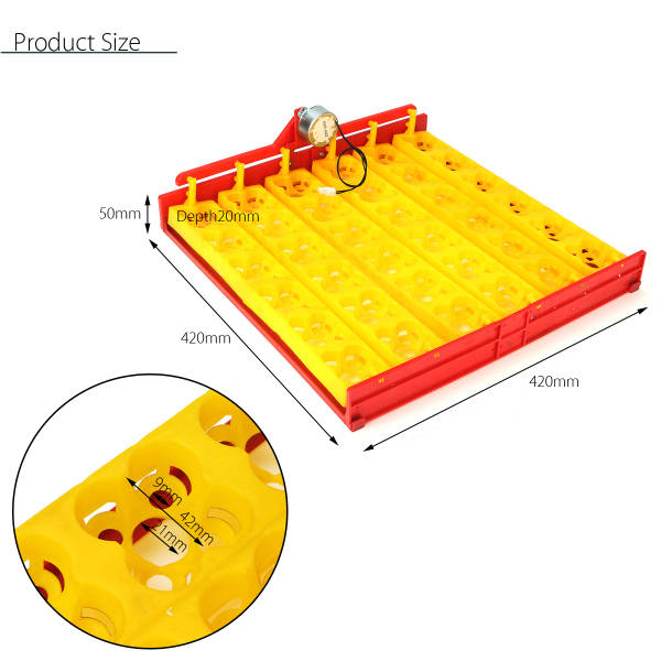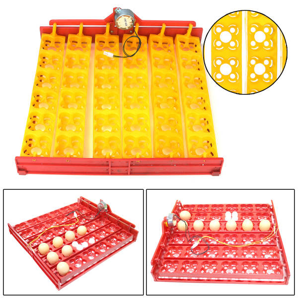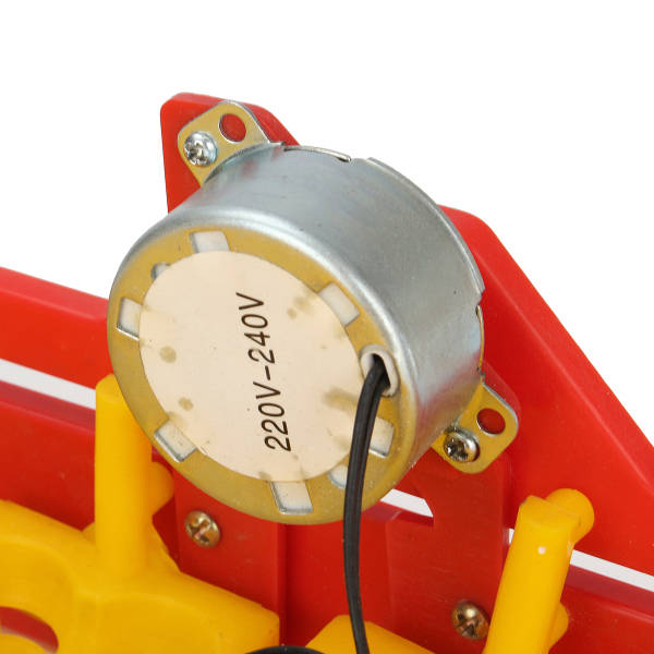 Specifacations: Product Name: Automatic 144/36 Quail Egg Turner Tray With Motor Material:Plastic Color:Red and Yellow Tray Size: 42x42 cm(L x W) (appr.) Motor Voltage: 220-240V (2.5/3r/min) Application:Chicken, duck, quail, bird eggs and other poultry eggs