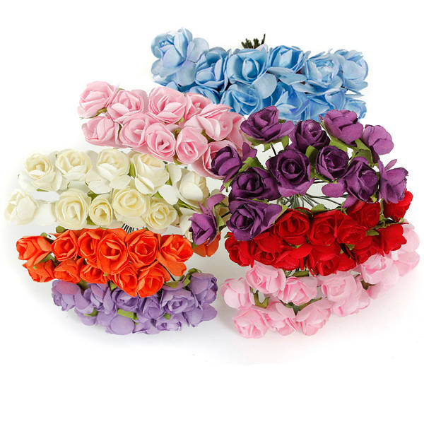 Description: Wedding Scrapbooking DIY Handmade Mini Paper Flowers Perfect for decorating wedding candy box and wedding card ,home and garden etc. Specification: Material: Paper + iron wire Color: Hot pink / Violet / Orange / Red / Blue / Ivory / Light purple / Pink Size: 8x8cm / 3.15x3.15 inch Each rose diameter: Appr. 1.5cm Package includes: 1 pack (144pcs) Artificial Paper Roses