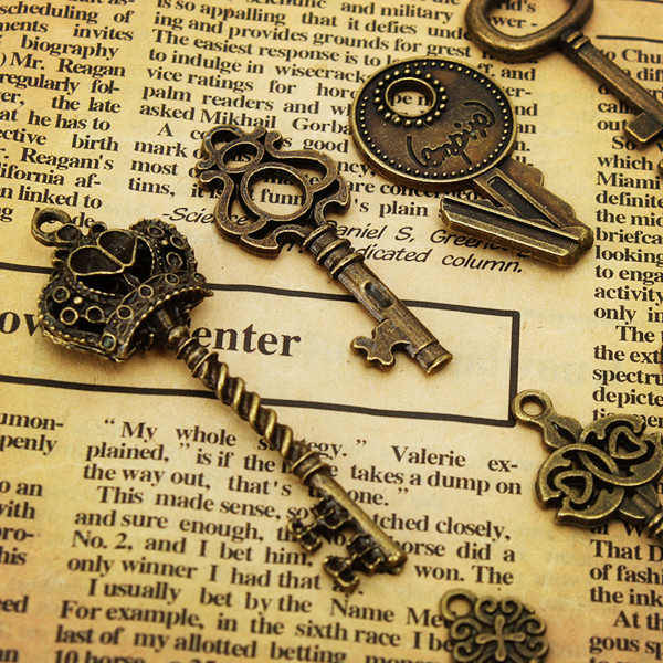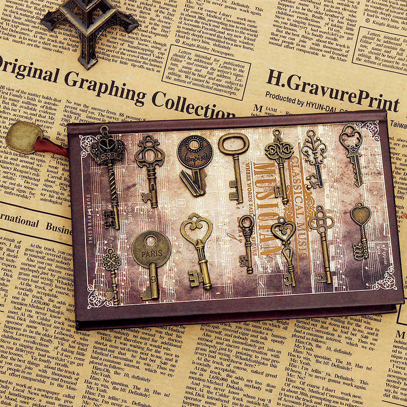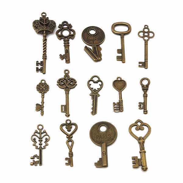 14pcs Retro Vintage Old Style Key Pendants DIY Accessaries