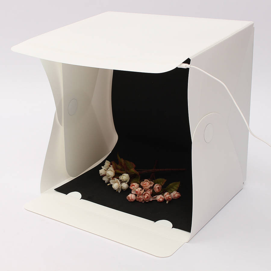 1 x Photo Studio Shooting Tent with Led Lighting 1 x Black Background 1 x White Background 1 x USB Cord 1 x Kraft Paper Box(Packed in box)