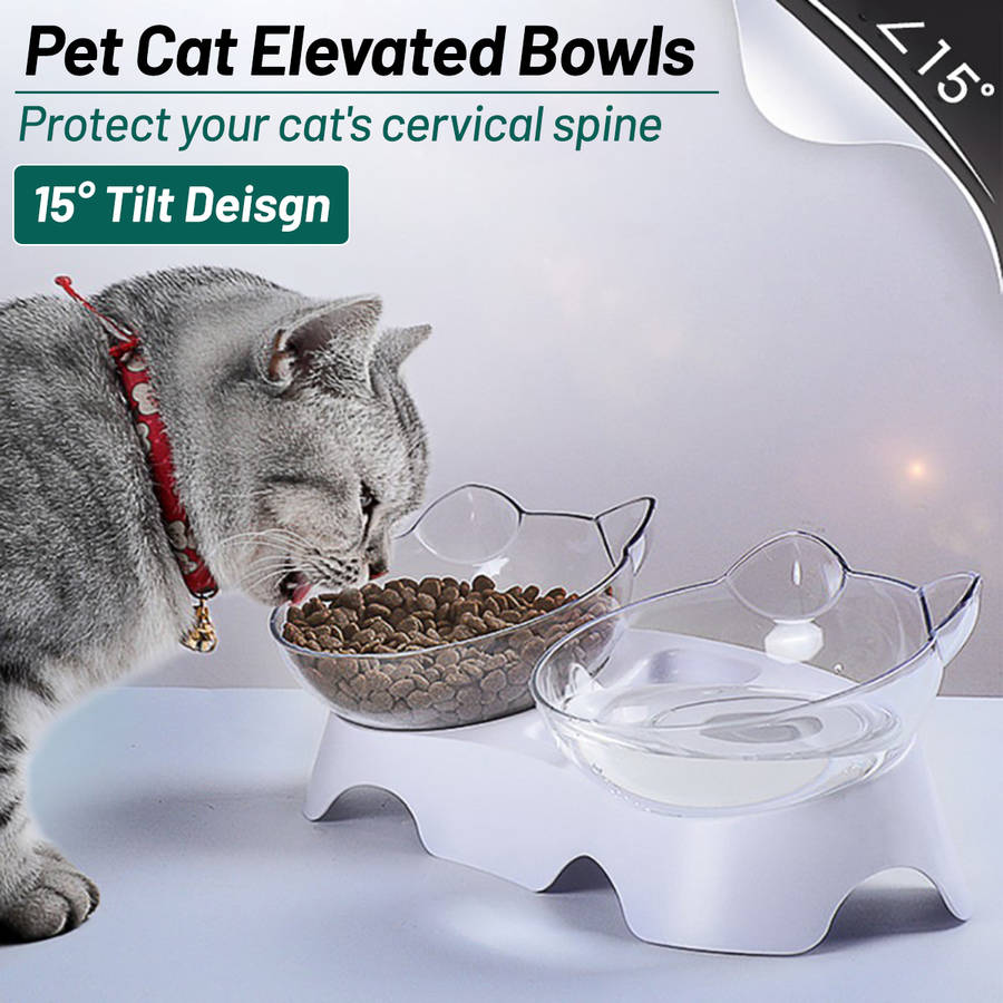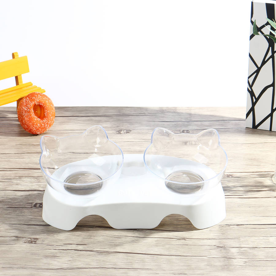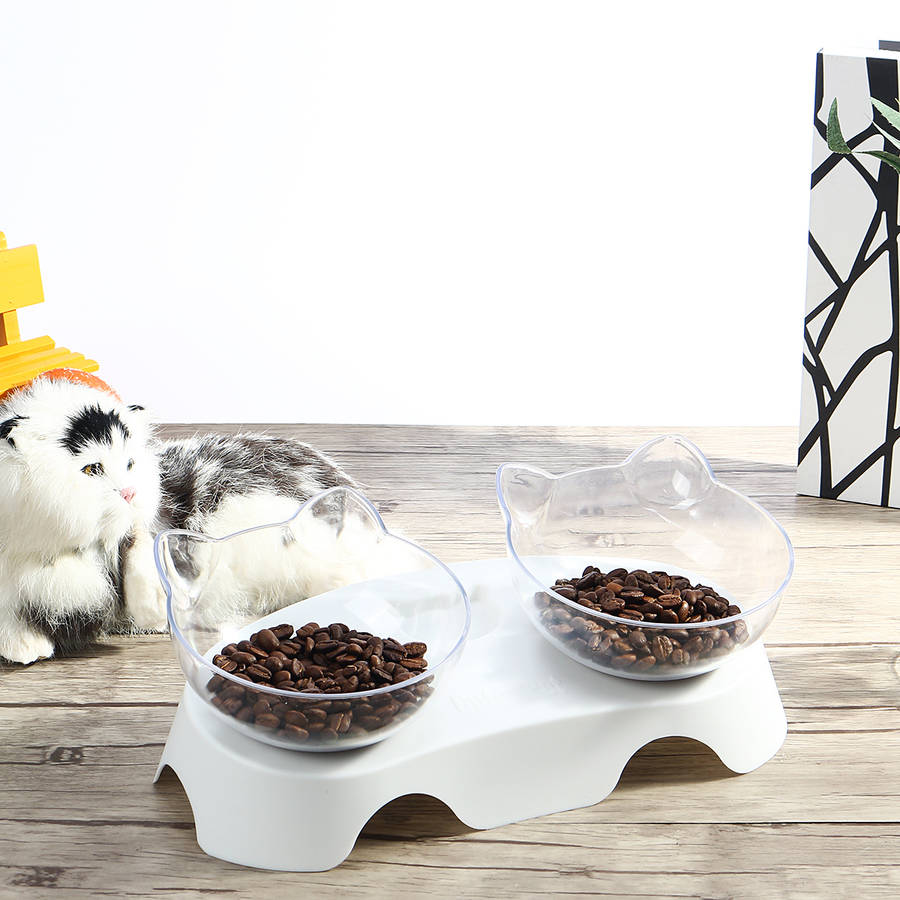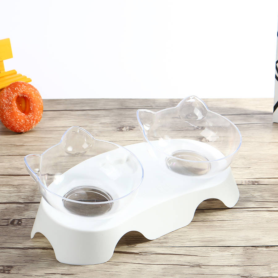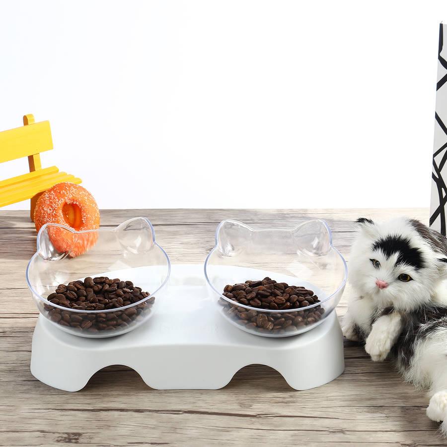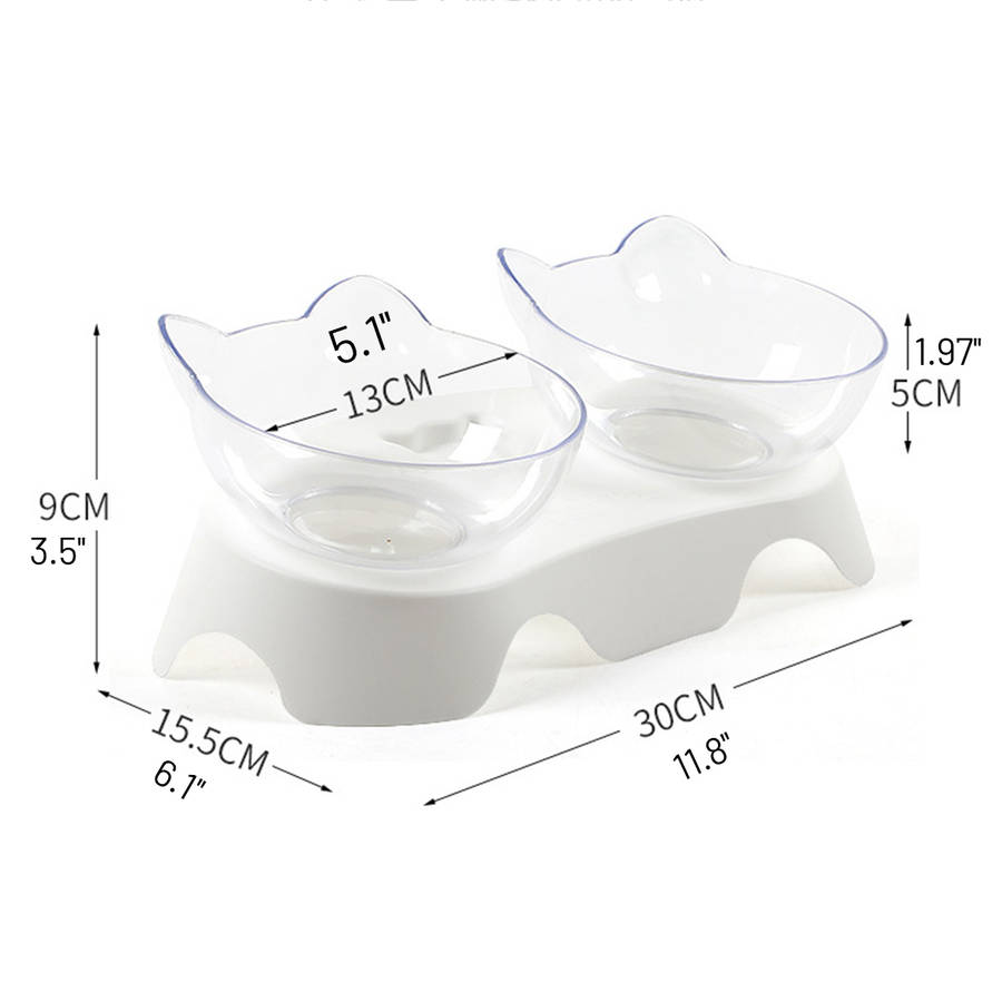 15 Degree Tilt Non-Slip Cat Elevated Bowls Pet Double Bowl for Feeding Container