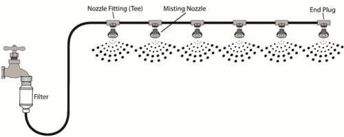 This advanced mist technology system can be easily attached to patios, gazebos, tents, greenhouses, umbrellas and more.